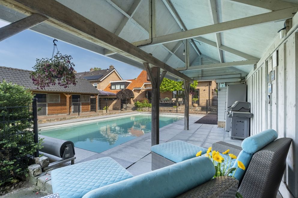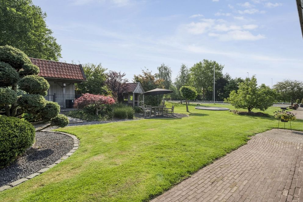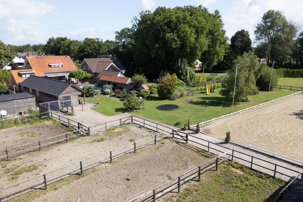 De tuin vormt het absolute hoogtepunt van deze woning. Vanuit de woonkamer stapt u zo het ruime perceel op, waar rust, privacy en uitzicht samenkomen. Voor paardenliefhebbers is dit een unieke kans: de tuin grenst aan een compleet uitgeruste paardenaccommodatie met een paardenbak die voorzien is van een eb- en vloedbodem met een grootte van 800m², een stapmolen, 2 ruime weide, paddocks, zeven stallen en een wasplaats. Binnen is een ruime poetsplaats en zadelkamer aanwezig. Alles is direct vanaf de woning bereikbaar en overzichtelijk ingedeeld. Daarnaast biedt de tuin een heerlijk ruim zwembad, perfect om op warme dagen te ontspannen. Verspreid over het perceel zijn meerdere zitplekken gecreëerd, in zowel zon als schaduw, waardoor u op elk moment van de dag van het buitenleven kunt genieten. De ruime oprit maakt het plaatje compleet, met voldoende parkeergelegenheid voor auto’s en trailers. Ook is het perceel via de paardenweide aan de achterzijde bereikbaar.