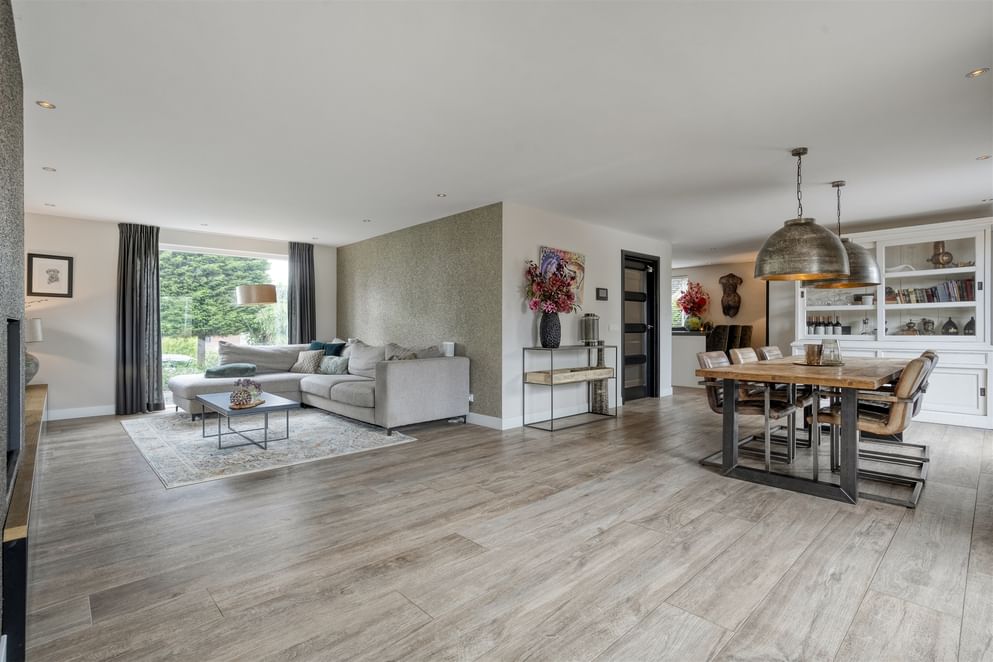 Bij binnenkomst in de woning wordt u direct verrast door de royale hal met een indrukwekkende vide, die een gevoel van ruimte en licht geeft. Vanuit hier heeft u toegang tot de sfeervolle woonkamer, voorzien van een gashaard, vloerverwarming en keramisch parket. Grote raampartijen zorgen voor veel lichtinval en een prachtig uitzicht op de tuin welke middels een schuifpui te bereiken is. De keuken is een droom voor de kookliefhebber en van alle gemakken voorzien: een wijnklimaatkast, koffieapparaat, twee koelkasten, combi-oven, vaatwasser en Quooker maken koken hier tot een beleving. Boven de garage bevindt zich een extra kamer, ideaal als kantoor, logeerkamer of hobbyruimte.