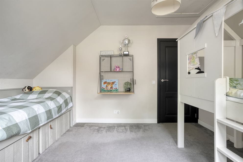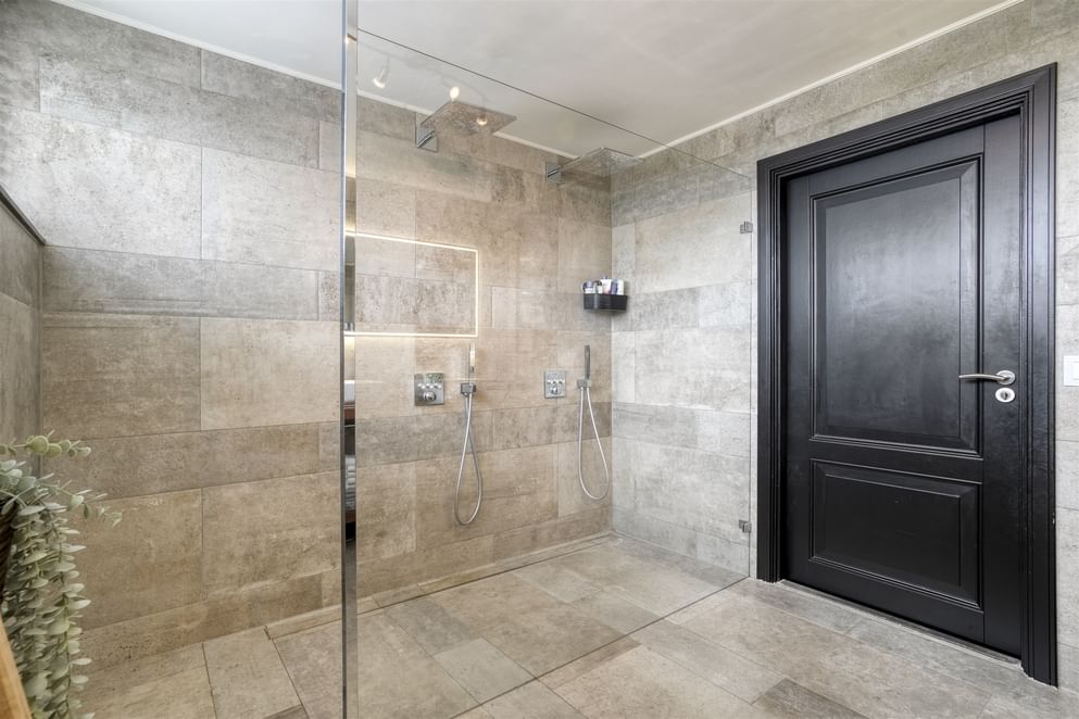 Op de eerste verdieping bevinden zich drie ruime slaapkamers, waaronder een royale master bedroom met inloopkast. De moderne badkamer is fraai afgewerkt en beschikt over een dubbele inloopdouche, dubbele wastafel en een zwevend toilet. Comfort en stijl komen hier prachtig samen.