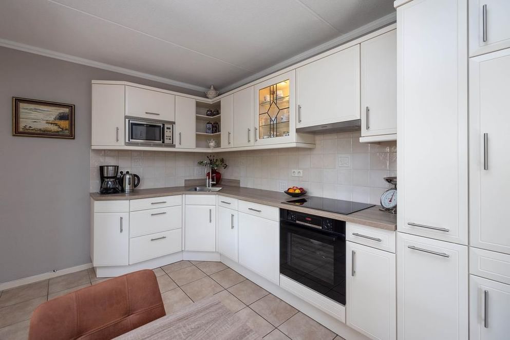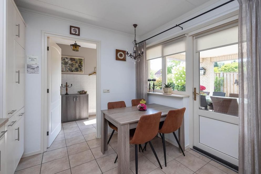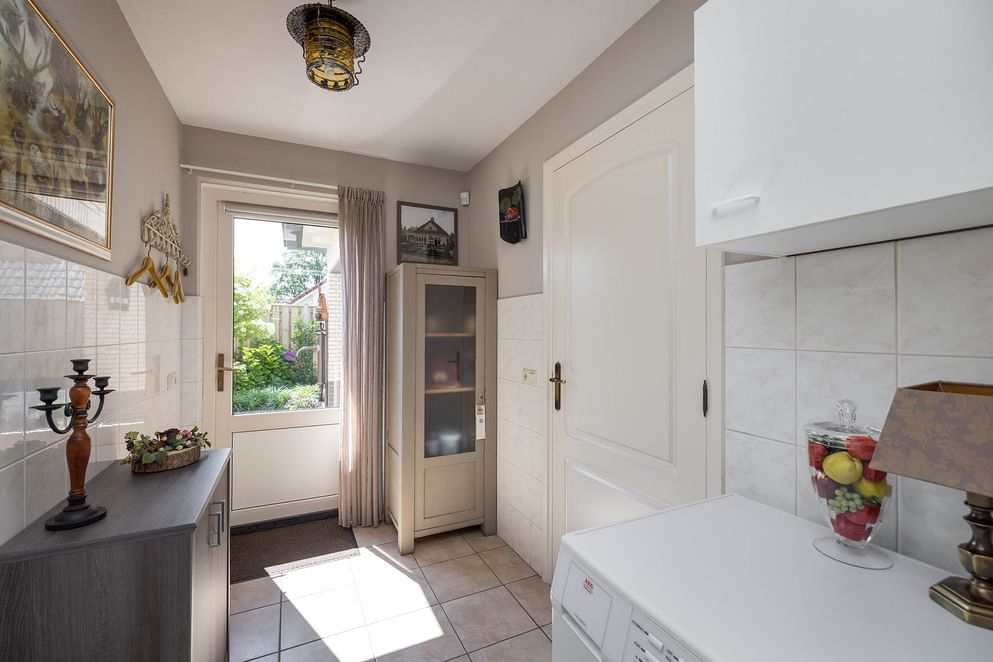 De ruime en verzorgde hal is voorzien van de trapopgang, toiletruimte en meterkast (vernieuwd in 2021). Vanuit hier bereik je de woonkamer die dankzij de grote raampartijen en de openslaande deuren naar de tuin een bijzonder lichte en prettige leefruimte is. De woonkamer heeft een open eetgedeelte met zicht op de tuin. De aangrenzende keuken is voorzien van moderne inbouwapparatuur, waaronder een inductiekookplaat en oven (beide uit 2022). Vanuit de keuken is de bijkeuken bereikbaar met toegang tot de tuin én de inpandige garage. De begane grond beschikt daarnaast over een comfortabele slaapkamer, voorzien van rolhorren, en een complete badkamer met ligbad, aparte douchehoek, tweede toilet, wastafel, designradiator en vloerverwarming.