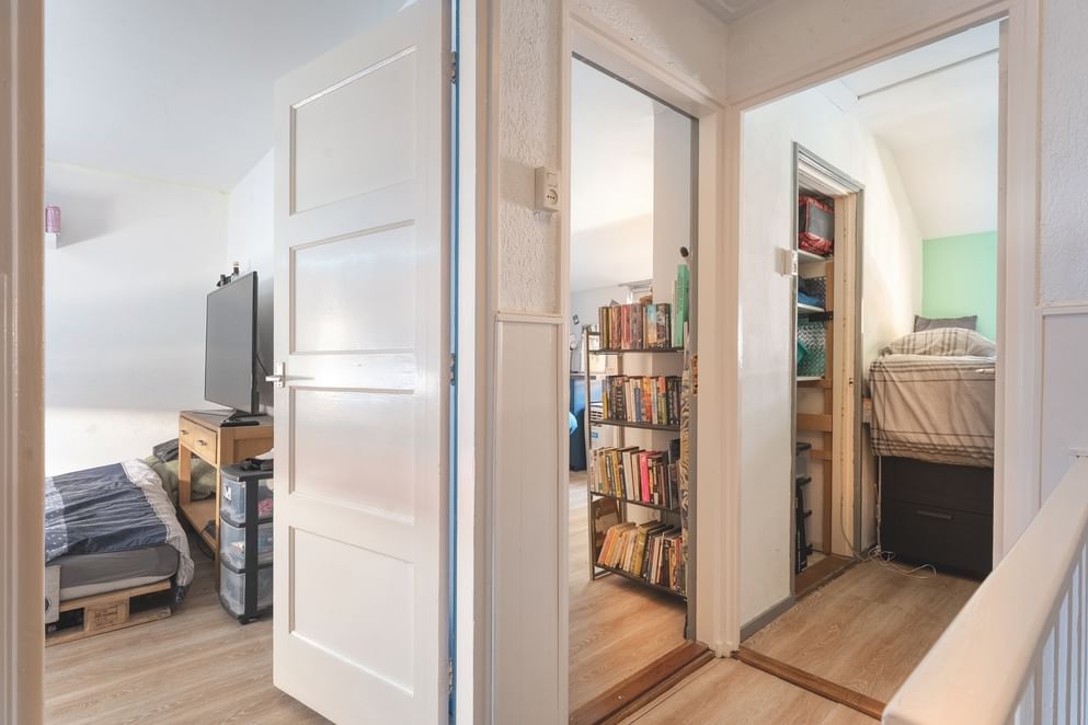 De eerste verdieping bestaat uit drie slaapkamers, waarbij alle kamers zijn voorzien van een vaste kast. Alle kamers zijn praktisch ingedeeld en bieden voldoende ruimte. De badkamer is compleet uitgevoerd met een douche, wastafelmeubel en handdoekradiator.