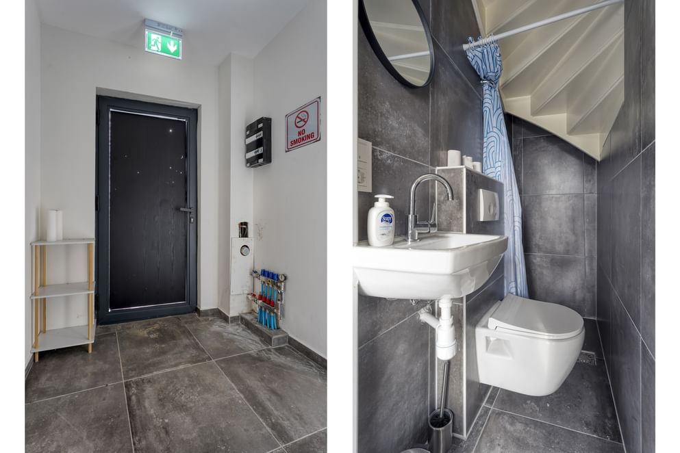 Op de begane grond vind je twee kamers en een badkamer met toilet, douche en wastafel. Deze ruimtes kunnen uitstekend worden gebruikt als kantoor, logeerkamer of praktijkruimte. Er is zelfs een mogelijkheid voor een B&B, waarbij de kopers zelf de vergunning dient aan te vragen bij de gemeente.
