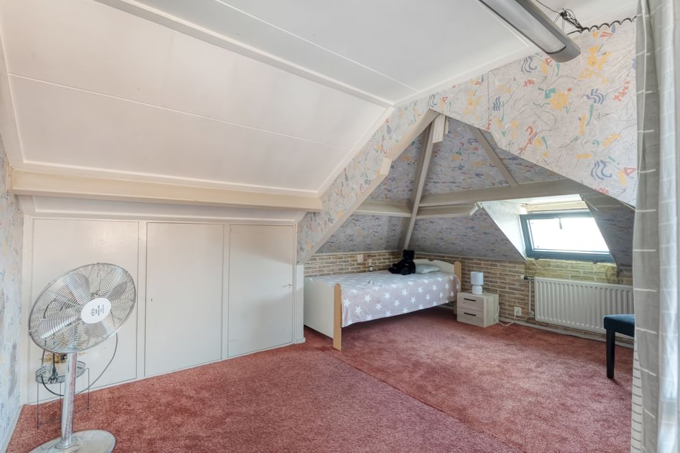 De tweede verdieping biedt een vierde slaapkamer en extra bergruimte, ideaal voor koffers, seizoensspullen of als hobbykamer.