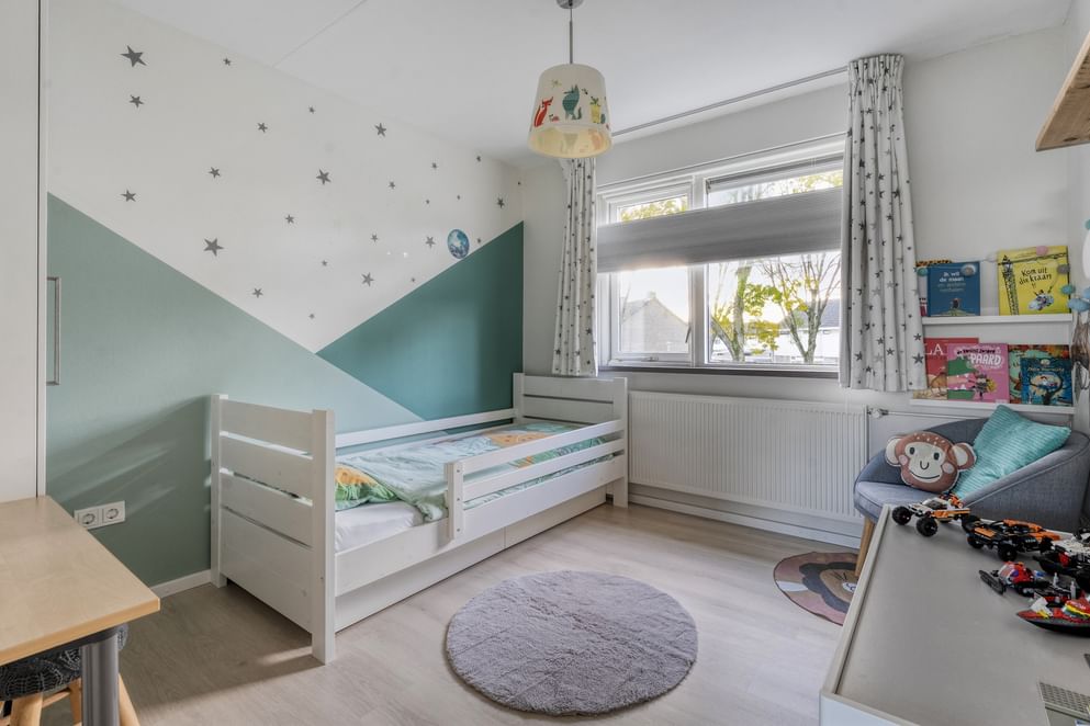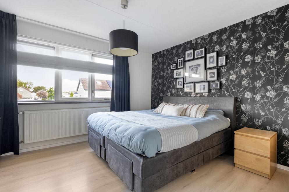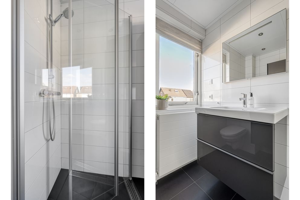 De eerste verdieping beschikt over drie ruime slaapkamers met veel lichtinval dankzij de gunstige ligging van de woning. De badkamer is modern en compleet uitgevoerd met een inloopdouche, toilet, wastafelmeubel en vloerverwarming.