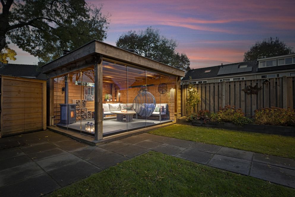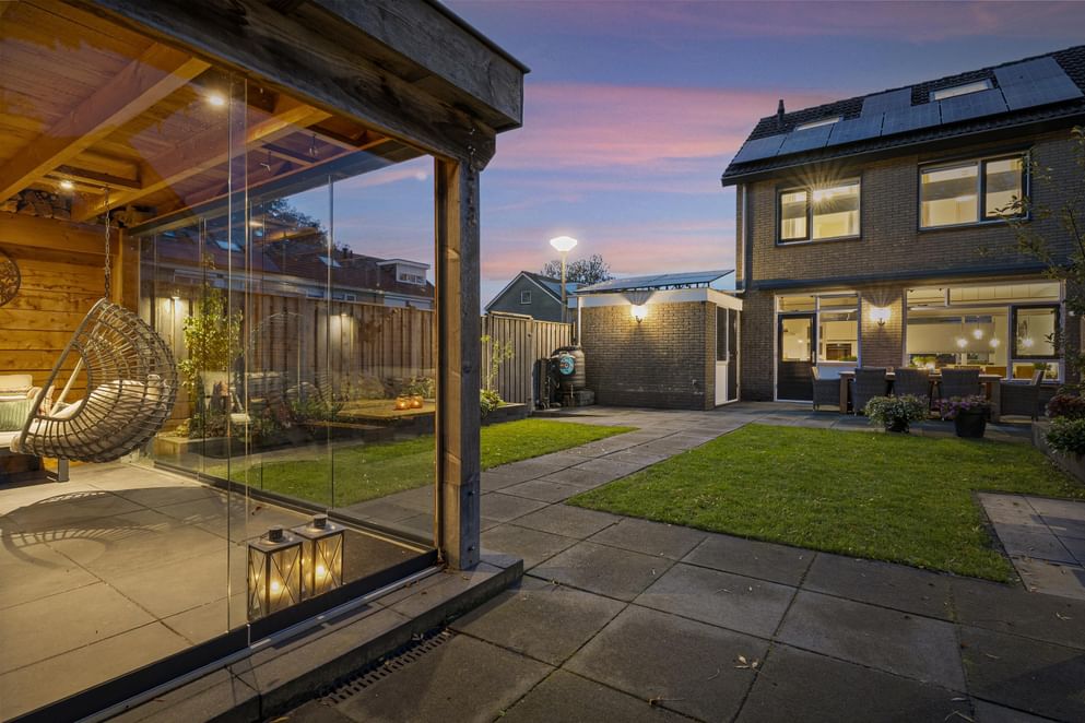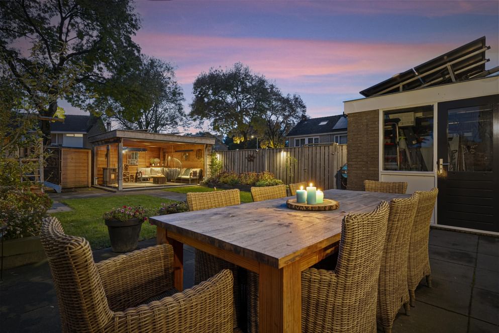 De fraaie achtertuin is gericht op het zuidwesten, waardoor je de hele dag door van de zon kunt genieten. De tuin is onderhoudsvriendelijk, maar sfeervol ingericht met een mooie overkapping waar je zowel in de zomer als winter comfortabel kunt zitten. Ook is er een grondwaterbron aanwezig, waarmee je zelf middels een elektrische pomp de tuin kan voorzien van water. Verder beschikt de tuin over een achterom en is er voldoende ruimte om te ontspannen of te tuinieren. De oprit aan de voorzijde maakt het geheel compleet.