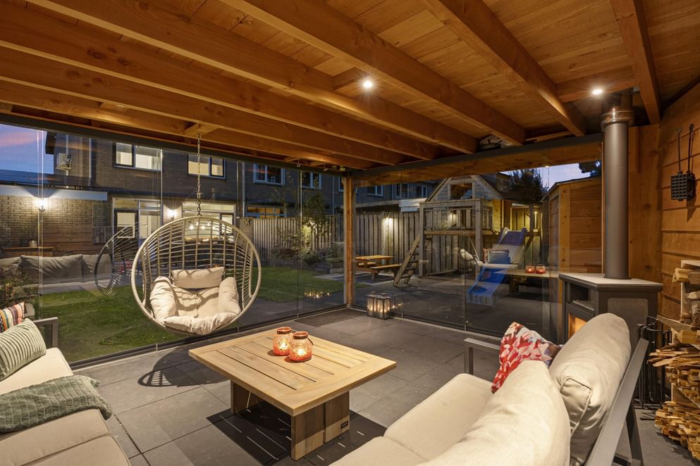 - Met een mooie, ruime overkapping met glazen schuifwanden