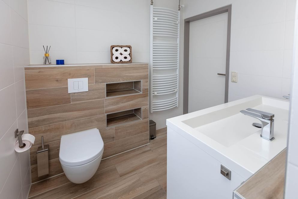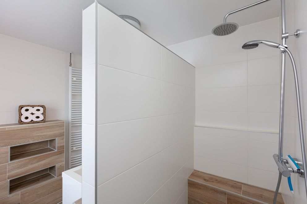 Via de overloop heb je toegang tot drie ruime slaapkamers en de badkamer. De moderne badkamer is voorzien van een grote inloopdouche, toilet, designradiator en dubbele wastafel met meubel.