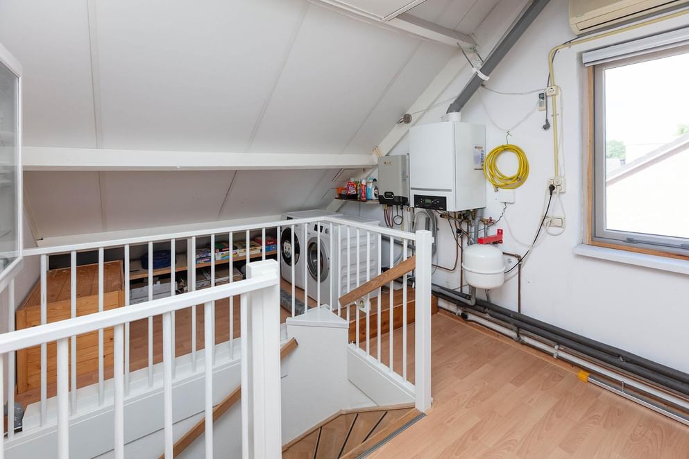 Middels een vaste trap is de tweede verdieping te bereiken. Hier is een ruime zolderruimte, met de Cv-installatie te vinden. Ook zijn hier de witgoedaansluitingen. Tevens zijn hier nog twee extra slaapkamers en een inloopkast! Boven de slaapkamers zit nog een vliering met opbergruimte. Deze woning is dus met recht volumineus te noemen!