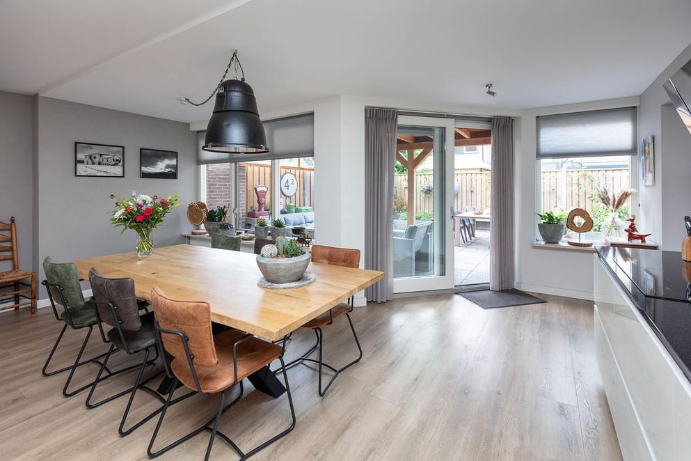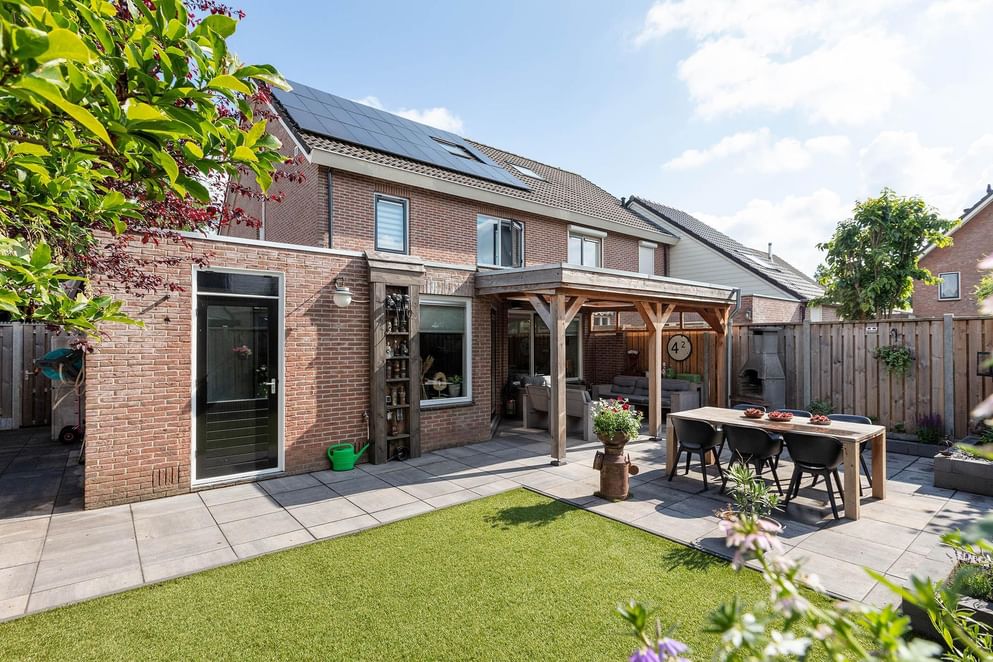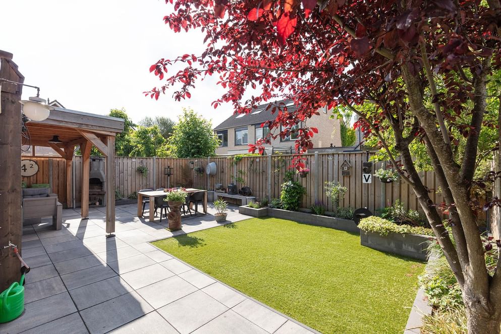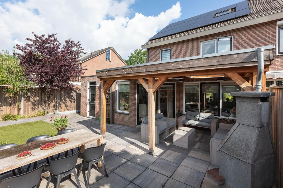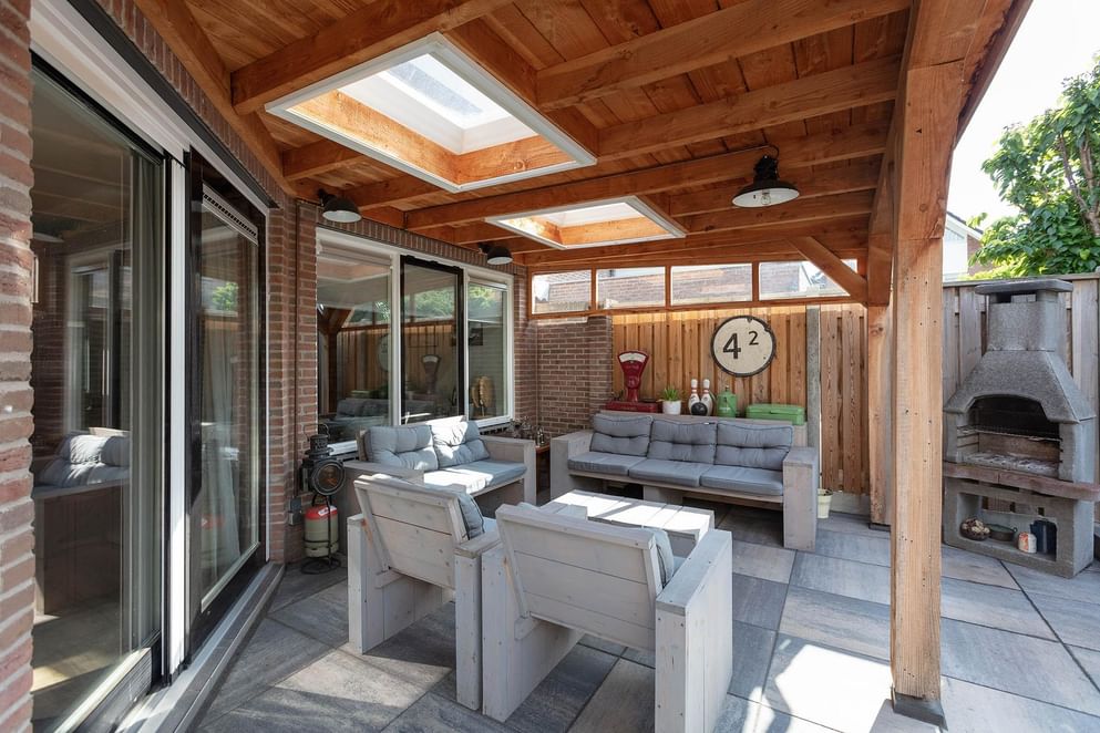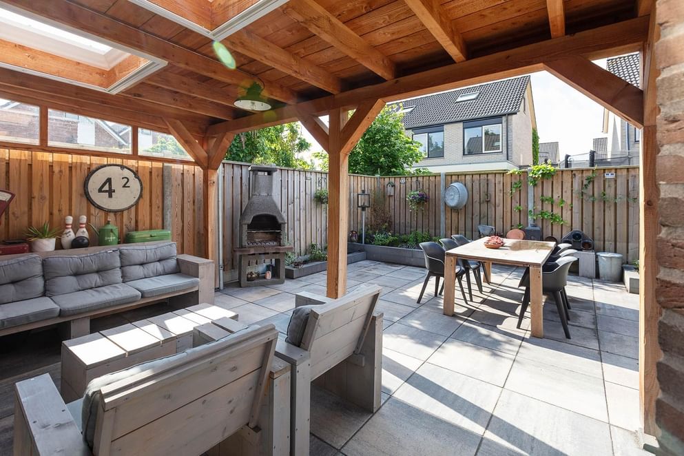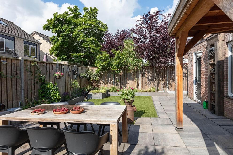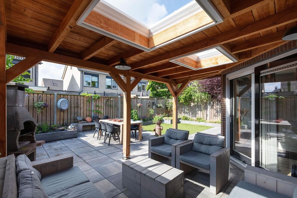 Via een schuifpui in de woonkeuken kun je de achtertuin bereiken. Deze is fraai aangelegd. De tuin beschikt over een royale veranda met twee daklichten. Hier kun je fijn vertoeven op een lange zomeravond!