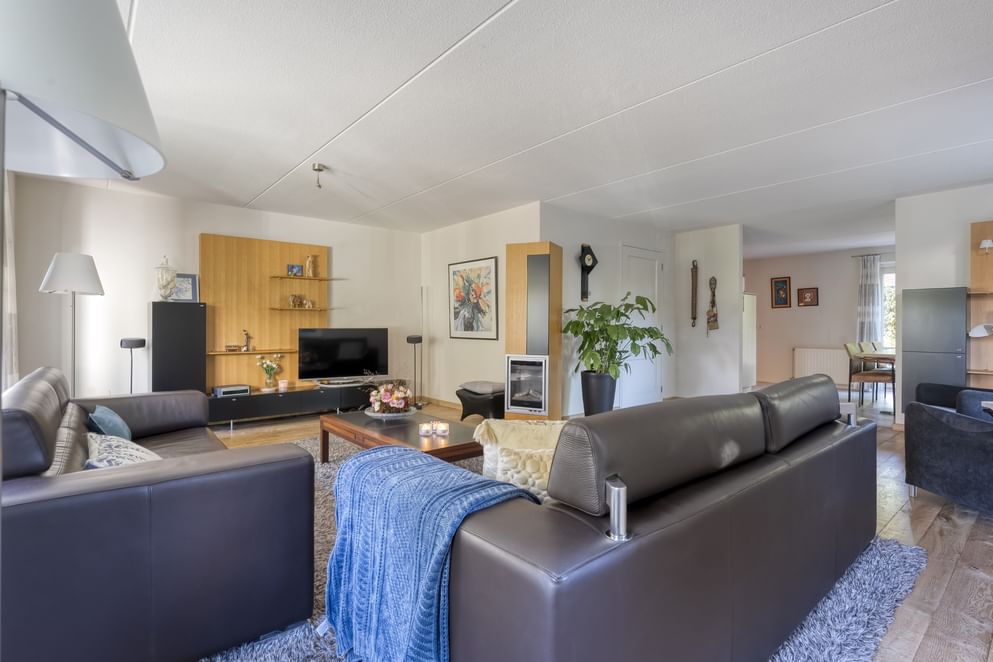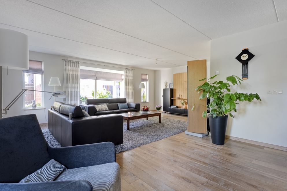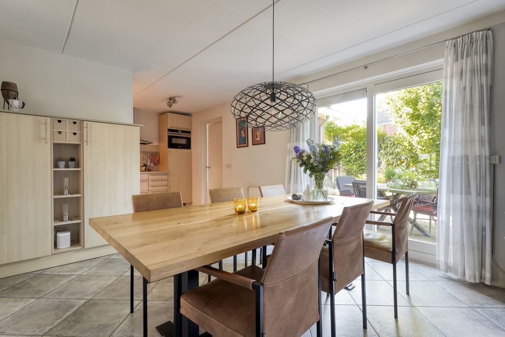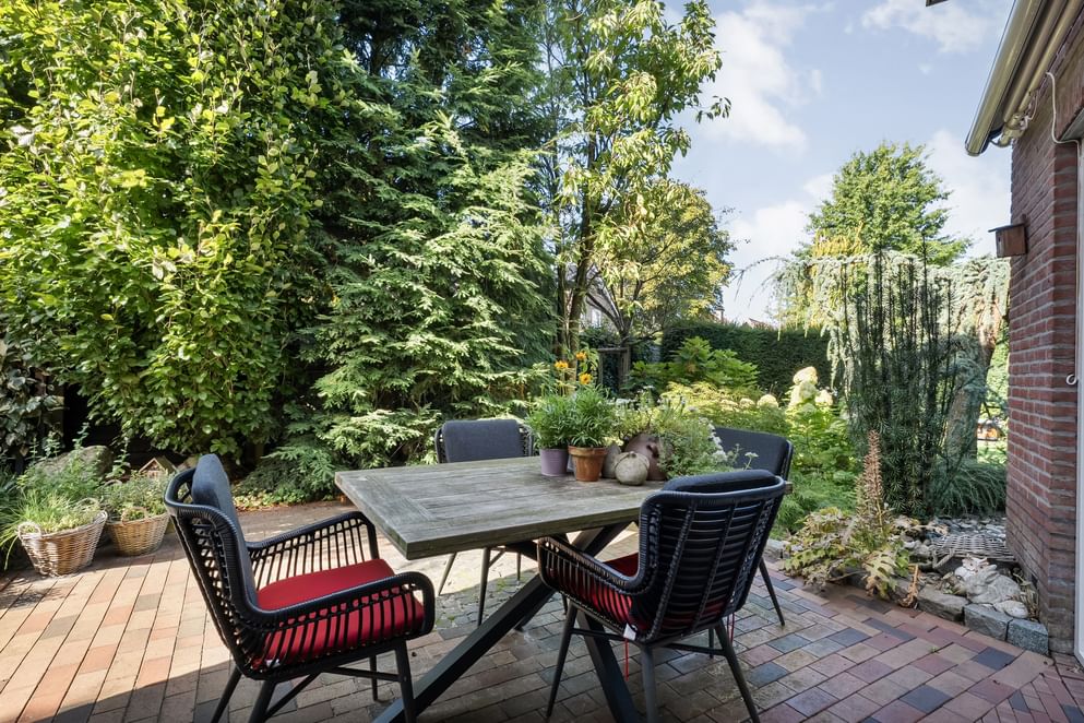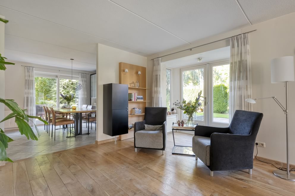 De lichte woonkamer heeft een erker aan de voorzijde en een erker met openslaande deuren aan de zijkant (west) van de woning. De praktische indeling en de vele mogelijkheden op de zolder maken dit tot een woning die volop woonplezier garandeert. Naast de woning zelf is ook de tuin een groot pluspunt waarbij de robotmaaier door het geleide systeem goed helpt in het onderhoud. Met meerdere zitplekken, een beschut terras en een groot grasveld is er altijd een fijne plek om te genieten van het buitenleven. De tuin is bovendien goed onderhouden door onder andere de robotmaaier en volledig omheind, wat zorgt voor rust en privacy.