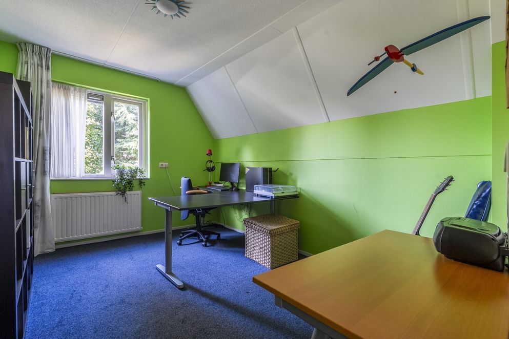De zolder is bereikbaar via een vaste trap en biedt volop ruimte en mogelijkheden. Hier kan eenvoudig een extra slaapkamer of werkruimte worden gerealiseerd. Ook bevindt zich hier de moderne CV-ketel uit 2023.
