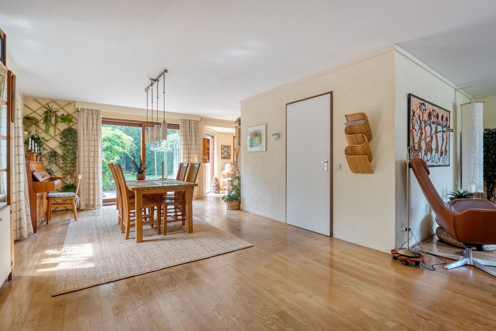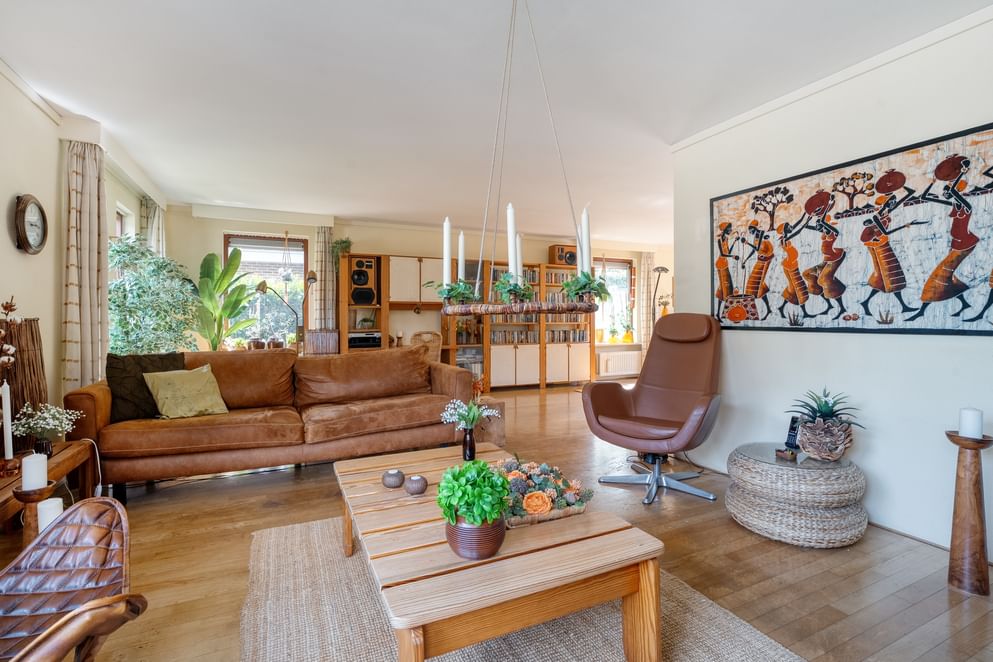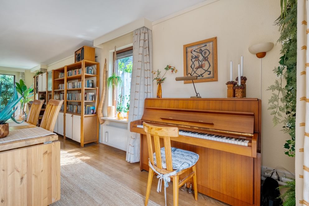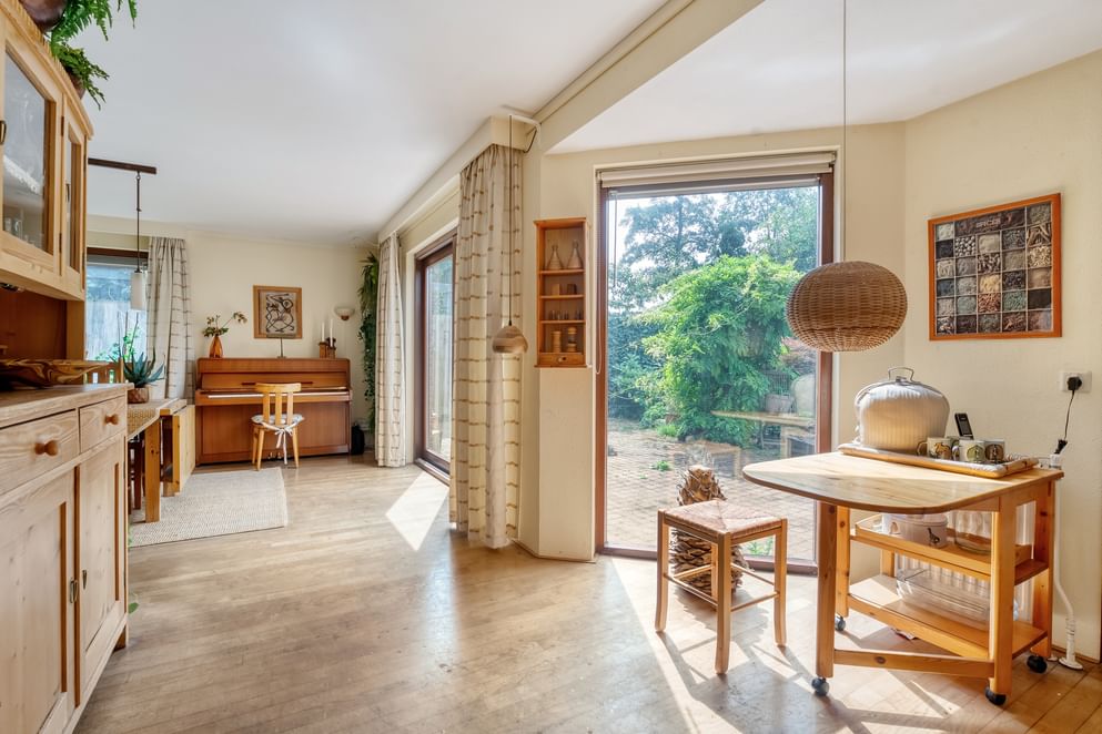 De sfeer van het huis is direct voelbaar bij binnenkomst. De ruime woonkamer vormt het hart van de woning en sluit naadloos aan op de keuken, waar ook de eettafel een fijne plek heeft. Samen vormen deze ruimtes een prettige leefomgeving waar u gemakkelijk met familie en vrienden kunt samenkomen. De praktische indeling, met onder andere een bijkeuken en veel bergruimte, zorgt ervoor dat alles in huis zijn plek heeft.