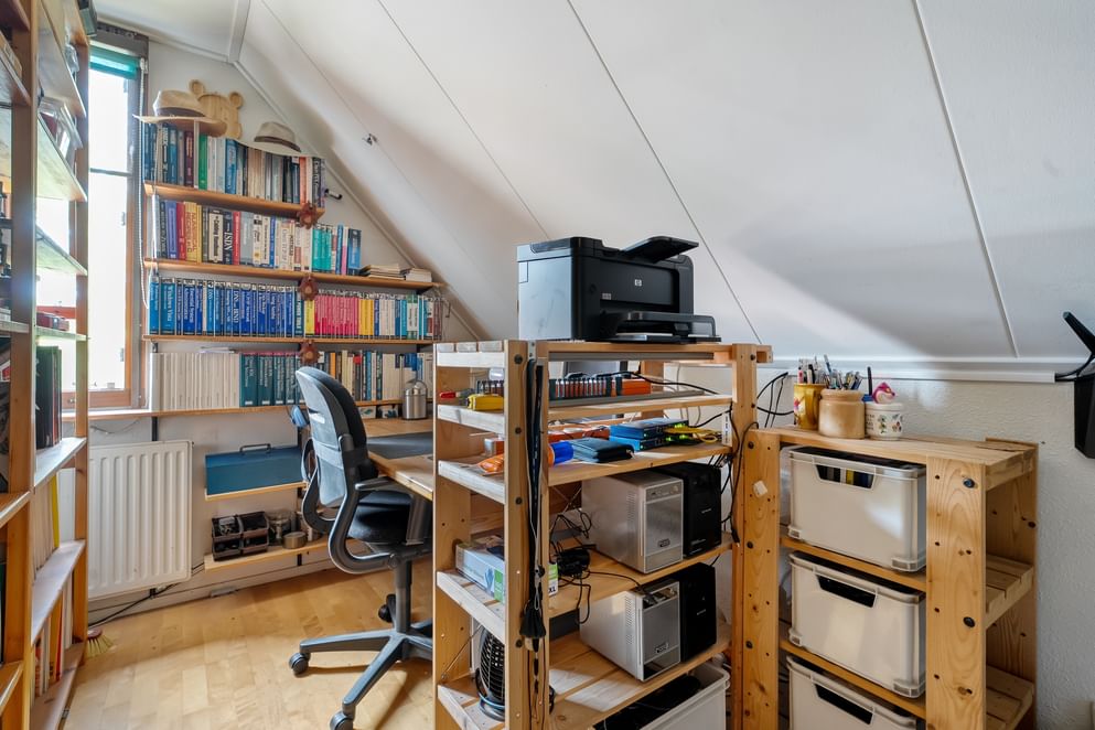 Via een vlizotrap is de zolder bereikbaar. Deze ruimte biedt volop mogelijkheden voor opslag en herbergt tevens de technische installaties. Het dak, de muren en het glas zijn goed geïsoleerd, wat bijdraagt aan het energielabel C van de woning.