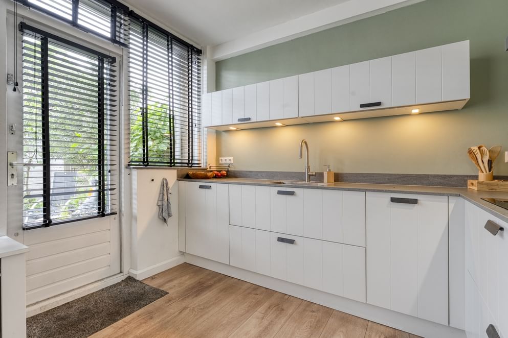 Het vernieuwde toilet, de moderne afwerking en de lichte, ruime woonkamer maken dit huis tot een fijne en comfortabele plek om te wonen. De half open keuken is een echte eyecatcher en in 2022 volledig vernieuwd. Voorzien van alle gemakken, waaronder een inductiekookplaat, Quooker, koelkast, combi-oven, magnetron en een vaatwasser, is dit een plek waar koken weer leuk wordt. Vanuit de keuken loop je zó de tuin in.