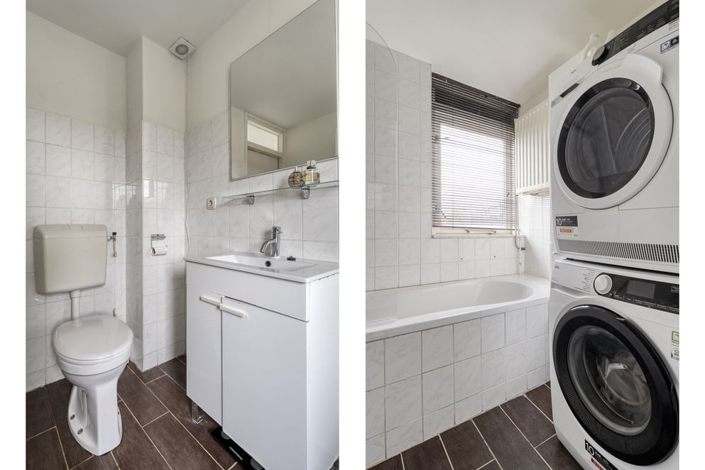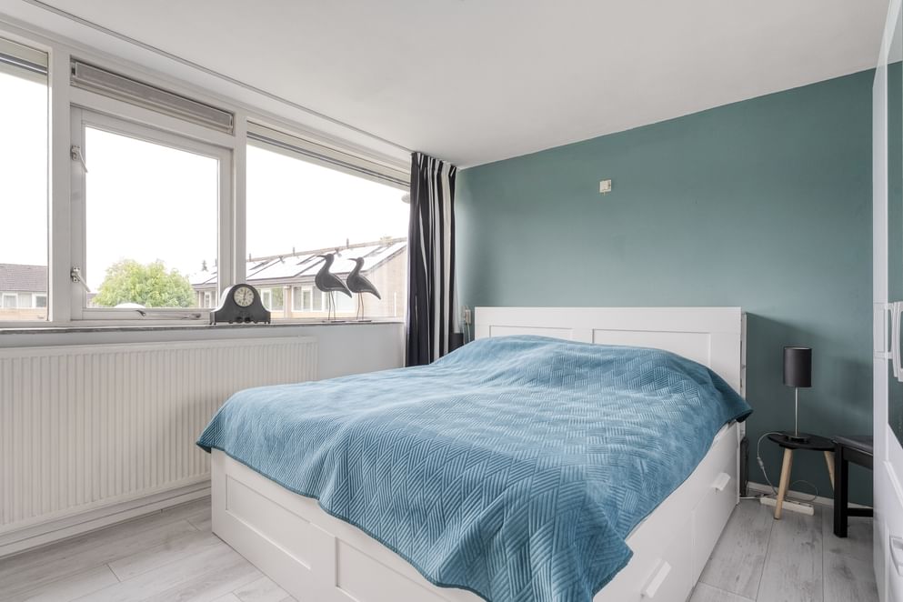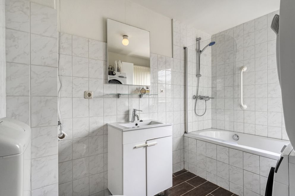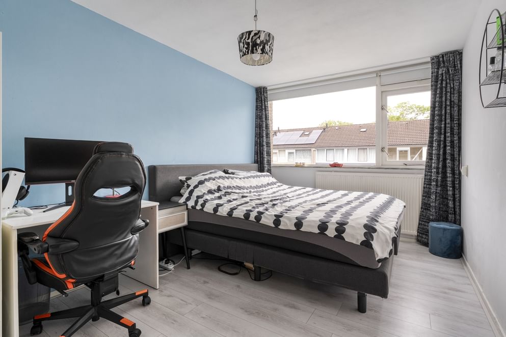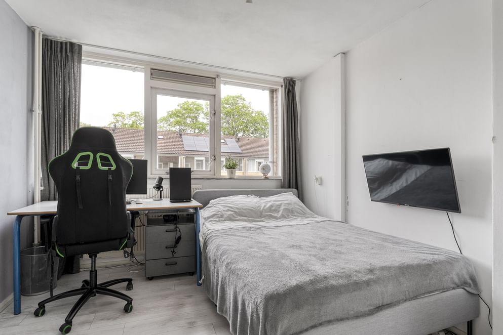 Op de eerste verdieping zijn drie slaapkamers aanwezig, waarbij alle kamers ruimte bieden aan een bureau, kledingkast en bed. De badkamer is compleet uitgerust en praktisch ingericht. Hier vind je een ligbad dat tevens dienstdoet als douche, ideaal voor wie houdt van ontspannen in bad maar ook snel wil kunnen douchen. Verder is er een wastafelmeubel met opbergruimte, een tweede toilet én de aansluiting voor de wasmachine en eventueel een droger. Alles wat je nodig hebt, overzichtelijk op één plek.
