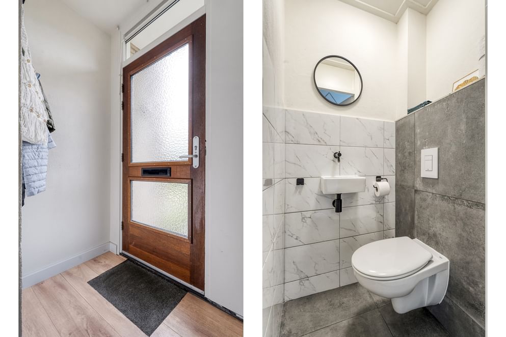 Via de voordeur kom je binnen in een nette hal met daarin het vernieuwde toilet (modern en strak afgewerkt), de trapopgang naar boven en de toegang tot de woonkamer. De grote raampartijen aan zowel de voor- als achterzijde zorgen voor een prettige natuurlijke lichtinval gedurende de hele dag. Aan de achterzijde van de woning bevindt zich de half open keuken, die in 2022 volledig is vernieuwd. Deze moderne keuken is van alle gemakken voorzien en uitgevoerd in een frisse, eigentijdse stijl. Hier vind je onder andere een inductiekookplaat, een Quooker, koelkast, oven, magnetron, afzuiging en een vaatwasser. De keuken biedt bovendien toegang tot de achtertuin, waardoor de tuin een mooi verlengstuk wordt van de leefruimtes op de begane grond.