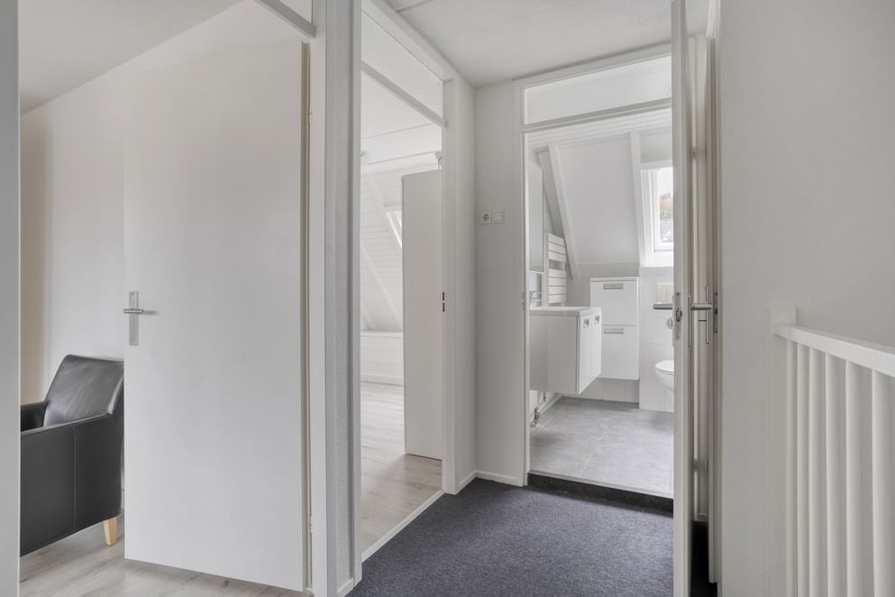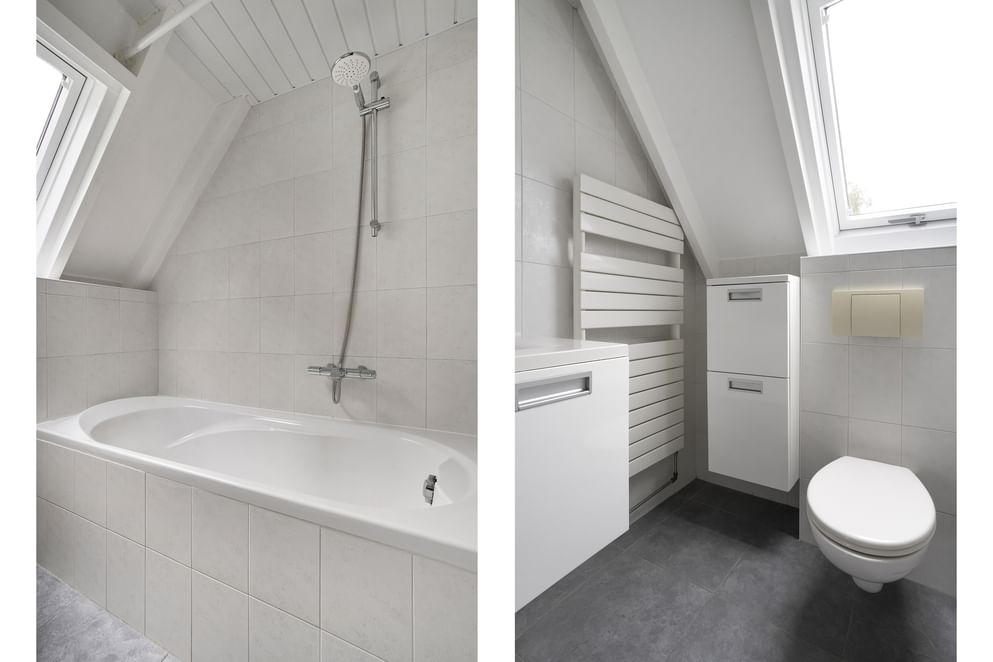 De eerste verdieping beschikt over twee ruime slaapkamers, waarvan de grootste gemakkelijk kan worden opgesplitst in twee aparte kamers. Vanuit deze kamer is tevens het ruime balkon bereikbaar. De badkamer is volledig uitgerust met een ligbad, toilet, wastafelmeubel en handdoekradiator, een fijne plek om even tot rust te komen.