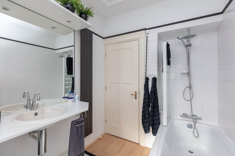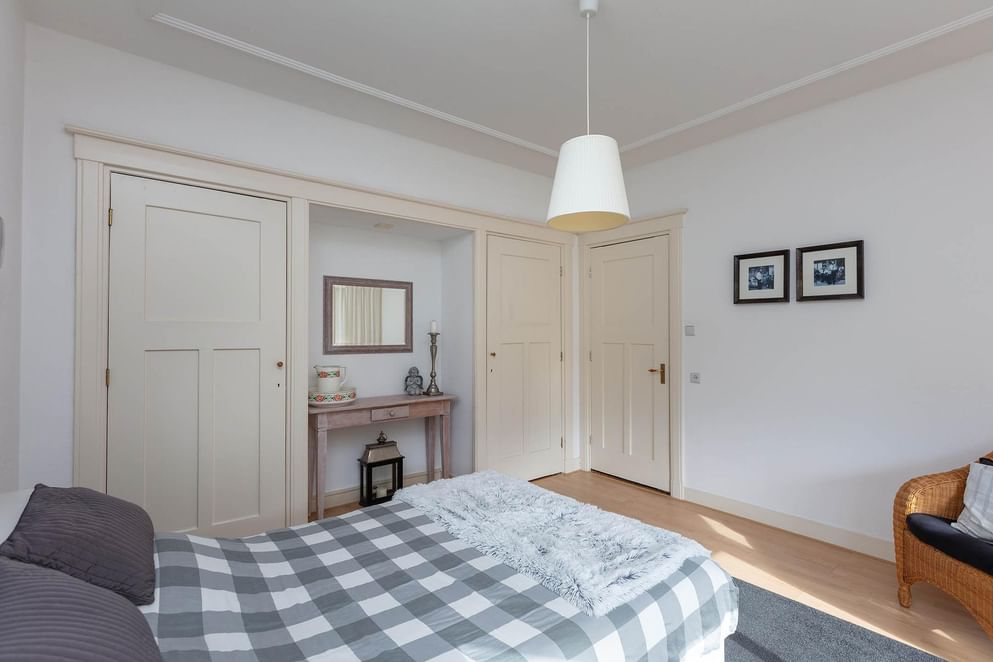 De overloop geeft je toegang tot drie slaapkamers en de badkamer. De slaapkamer aan de voorkant van de woning heeft een erker en inbouwkasten. Een van de slaapkamers wordt op dit moment gebruikt als kledingkamer met de witgoedaansluitingen. De beide slaapkamers beschikken over handige inbouwkasten. De badkamer beschikt over een ligbad, toilet en wastafel.