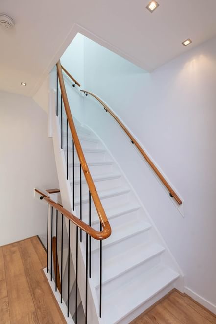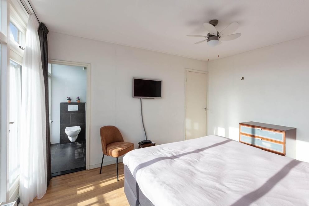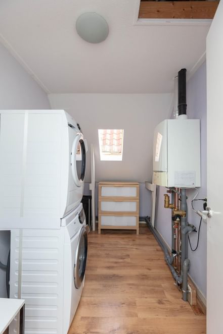 Middels een vaste trap is de tweede etage bereikbaar. Hier zijn nog eens twee slaapkamers te vinden. Ook zijn op deze etage de cv-installatie en witgoedaansluitingen. Tot slot kun je de vliering nog bereiken, wat bruikbaar is als extra bergruimte.