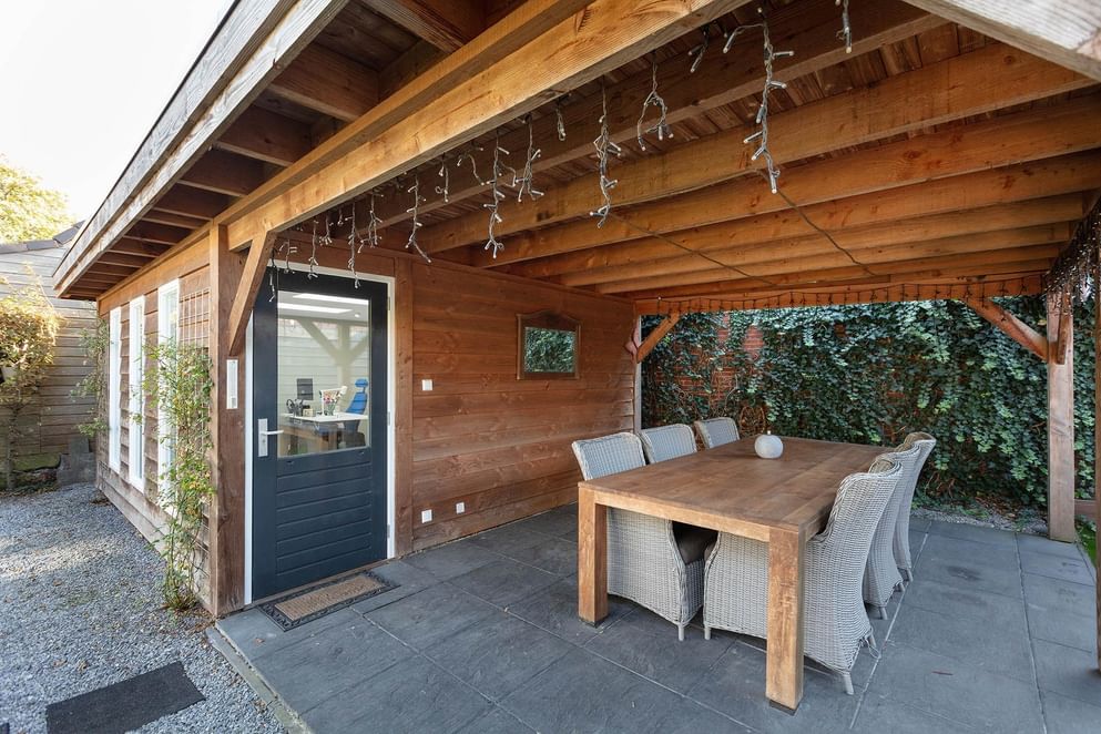 - Geïsoleerd en verwarmd bijgebouw met overkapping geschikt voor meerdere doeleinden