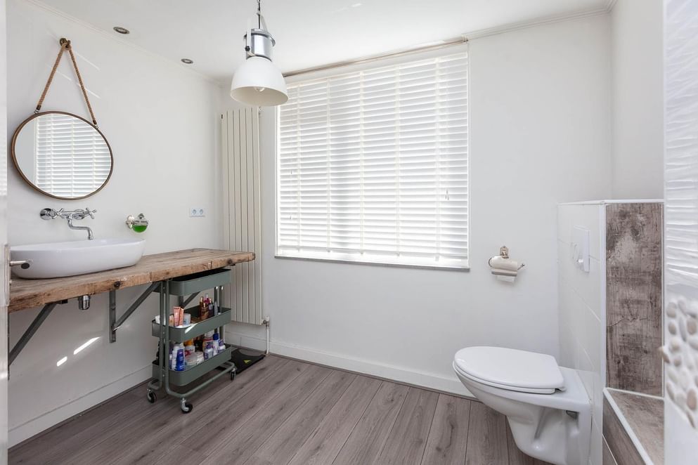 De overloop geeft je toegang tot twee slaapkamers, de doucheruimte en de badkamer. De slaapkamers beschikken over vaste kasten. De doucheruimte is licht en modern. En de aparte badkamer met toilet ook. Hier is een wastafel en een vrijdragend toilet te vinden.