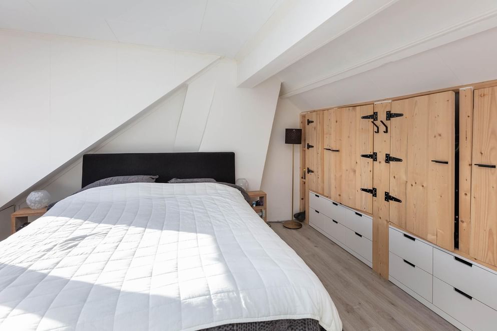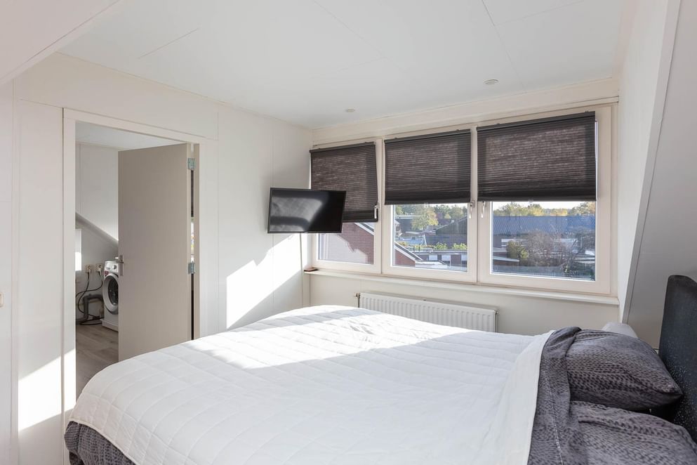 Middels een vaste trap kun je de tweede etage bereiken. Hier zijn de aansluitingen voor het witgoed te vinden en is de Cv-installatie gesitueerd. Ook is hier nog een extra slaapkamer die mede door de dakkapel riant aanvoelt.