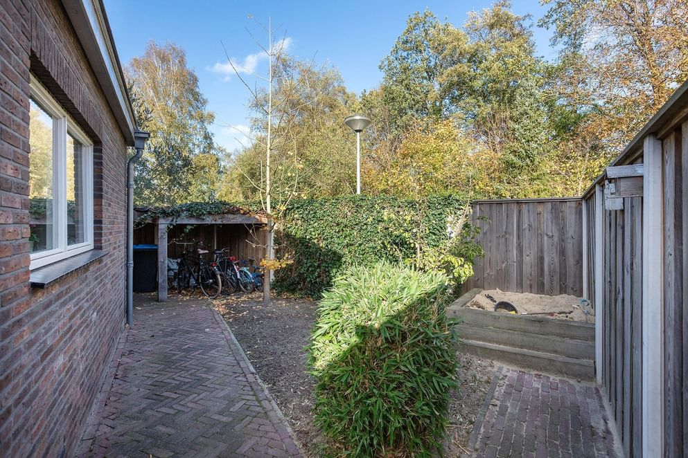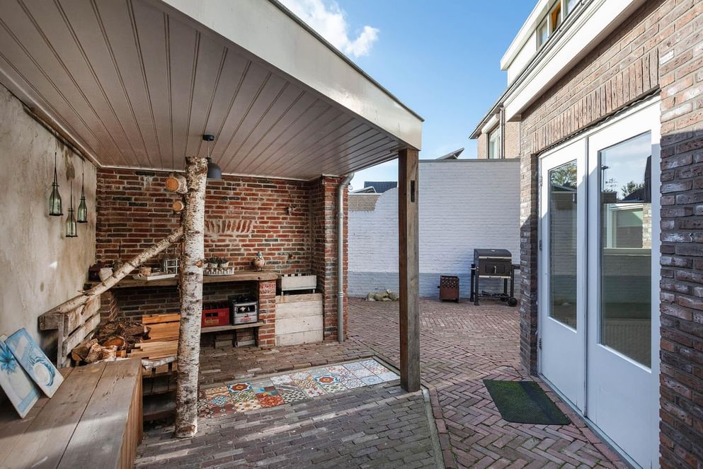 Via de deur in de keuken, kun je de achtertuin bereiken. Hier is onder andere een stenen berging met overkapping te vinden. Ook is er een achterom.