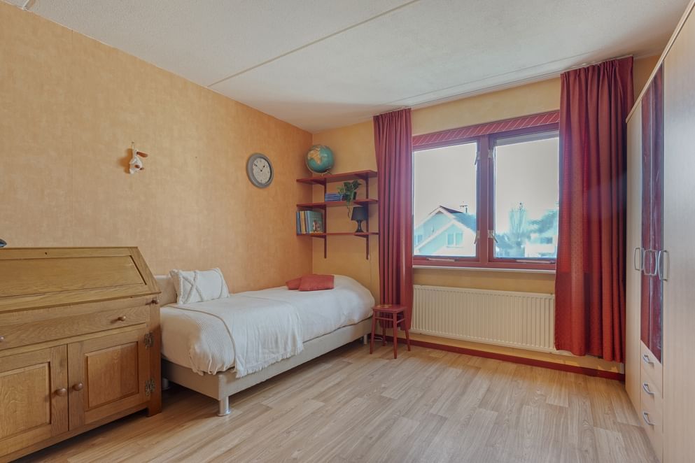 De tweede verdieping is voorzien van twee slaapkamers, beide uitgerust met een praktische inbouwkast. Deze verdieping biedt extra woonruimte en maakt het woongenot van de woning compleet.