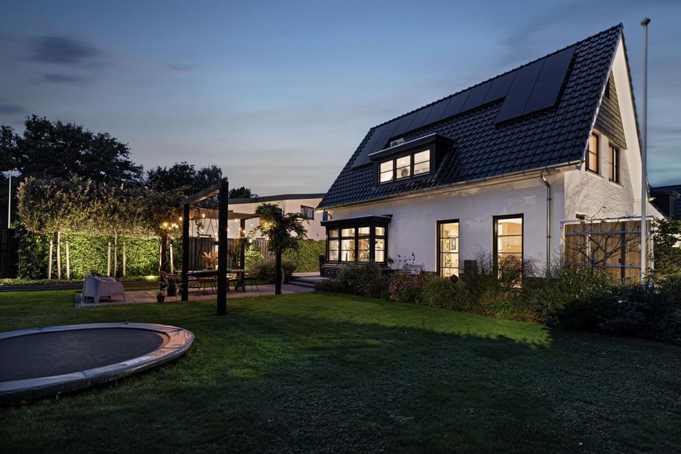 De hoofdtuin is een echte eyecatcher: onder architectuur aangelegd, gelegen op het zuiden en voorzien van meerdere zitplekken. Hier geniet je optimaal van de middag- en avondzon, omringd door een mooie combinatie van groen, onderhoudsvriendelijke bestrating en sfeerverlichting. De tuin beschikt daarnaast over een praktische schuur voor fietsen en gereedschap.