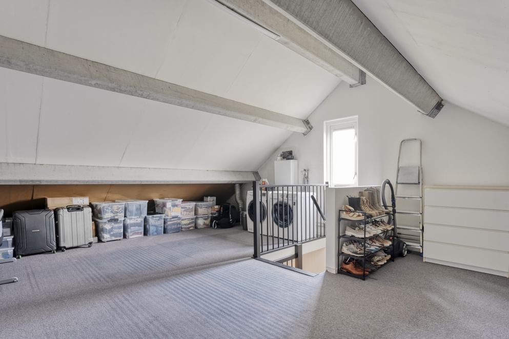 De tweede verdieping is bereikbaar via een vaste trap en biedt volop mogelijkheden. Hier bevinden zich de witgoedaansluitingen, maar de ruimte is ook uitstekend in te richten als kantoor, hobbykamer of extra slaapkamer.