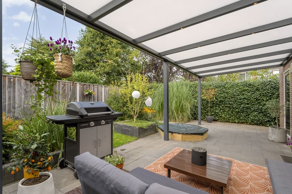 De tuin is een waar hoogtepunt van deze woning. Onder architectuur aangelegd, biedt ze meerdere zitplekken en een mooie overkapping. Dankzij de open ligging geniet u volop van de zon, maar er is ook altijd een fijne plek in de schaduw te vinden. De tuin is bovendien voorzien van een achterom, wat het praktisch en comfortabel maakt.