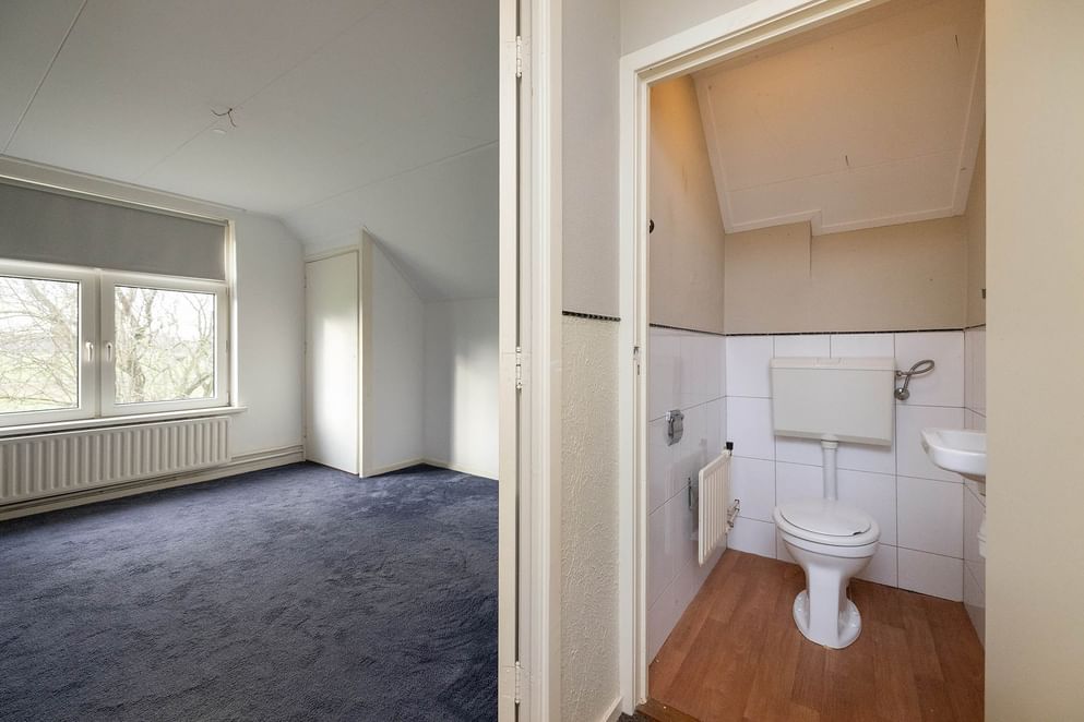 Overloop met toegang tot twee slaapkamers, toilet en een stookruimte.
