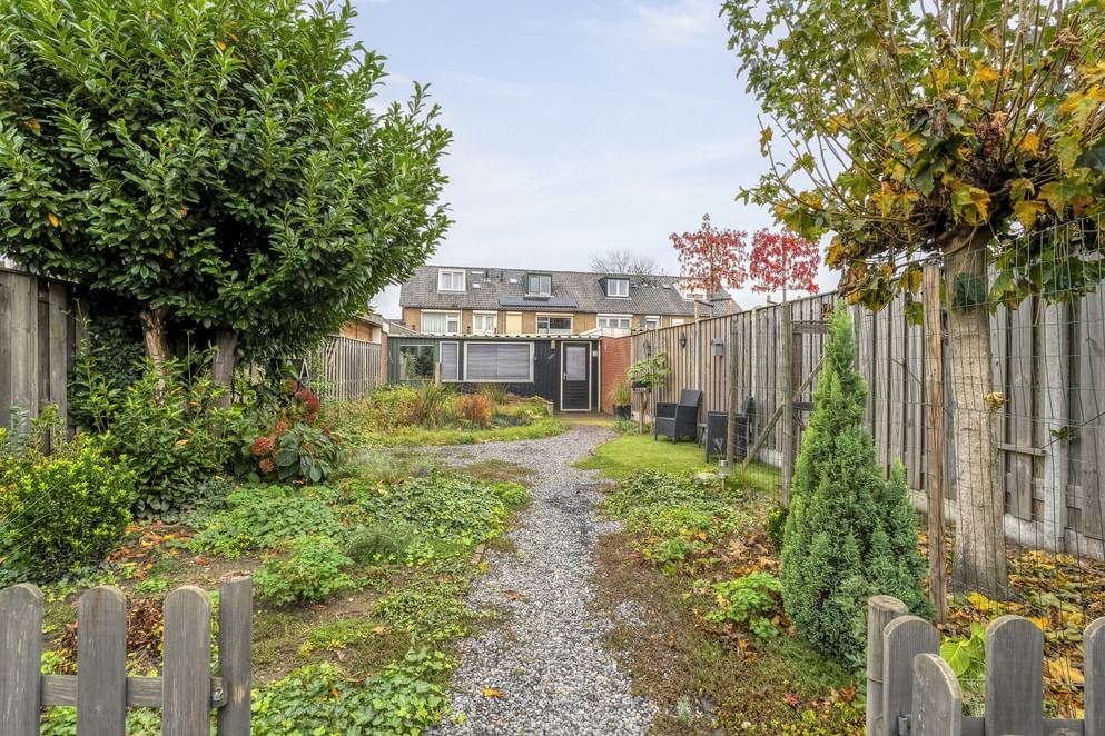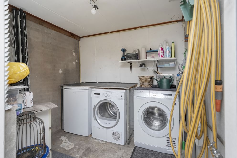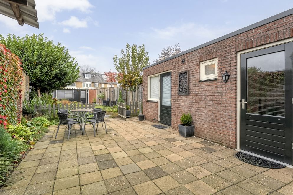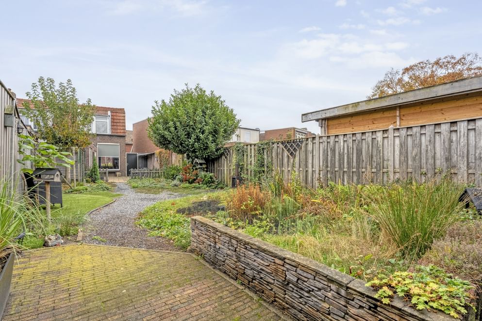 De tuin is een echte eyecatcher: ruim, sfeervol en met een mooie balans tussen groen en bestrating. Hier vind je een vijver, grote schuur en extra berging met witgoedaansluiting, ideaal voor fietsen of tuingereedschap. Dankzij de ligging op het westen geniet je hier volop van de middag- en avondzon.
