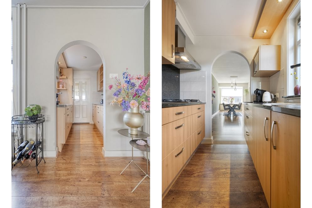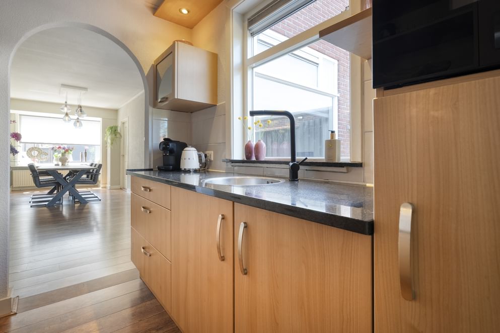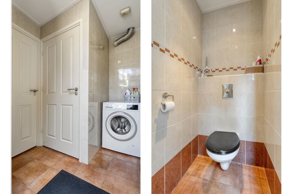 Bij binnenkomst stap je de lichte en ruime woonkamer binnen. Deze staat in open verbinding met de keuken, wat zorgt voor een prettige leefruimte. Aansluitend bevindt zich de uitbouw met daarin de badkamer, wasruimte, het toilet en toegang tot de tuin. De badkamer is voorzien van comfortabele vloerverwarming, ideaal voor koude dagen.