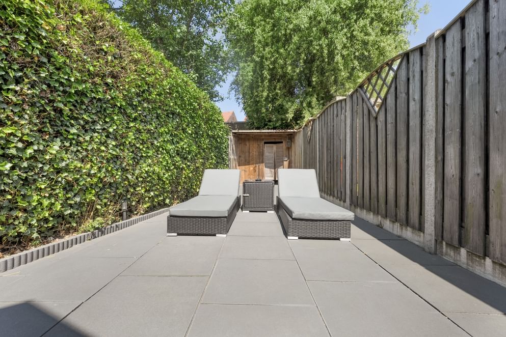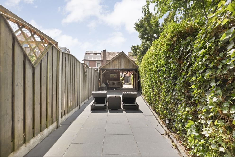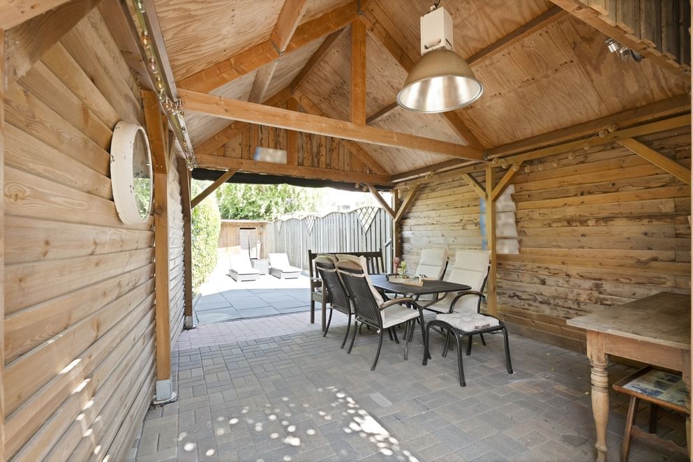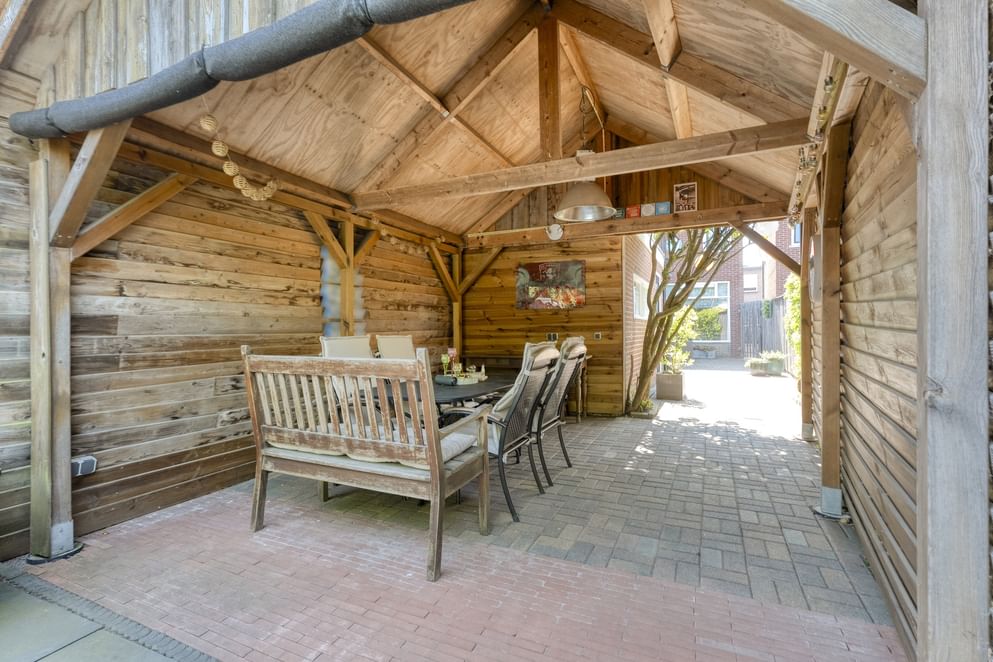 De achtertuin is fraai aangelegd en biedt volop mogelijkheden om te genieten van het buitenleven. Er is een ruime overkapping, een berging en meerdere zitplekken, met zowel zon als schaduw. De tuin is bovendien onderhoudsvriendelijk aangelegd, ideaal voor wie weinig omkijken wil hebben.