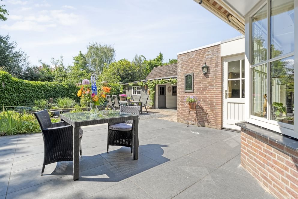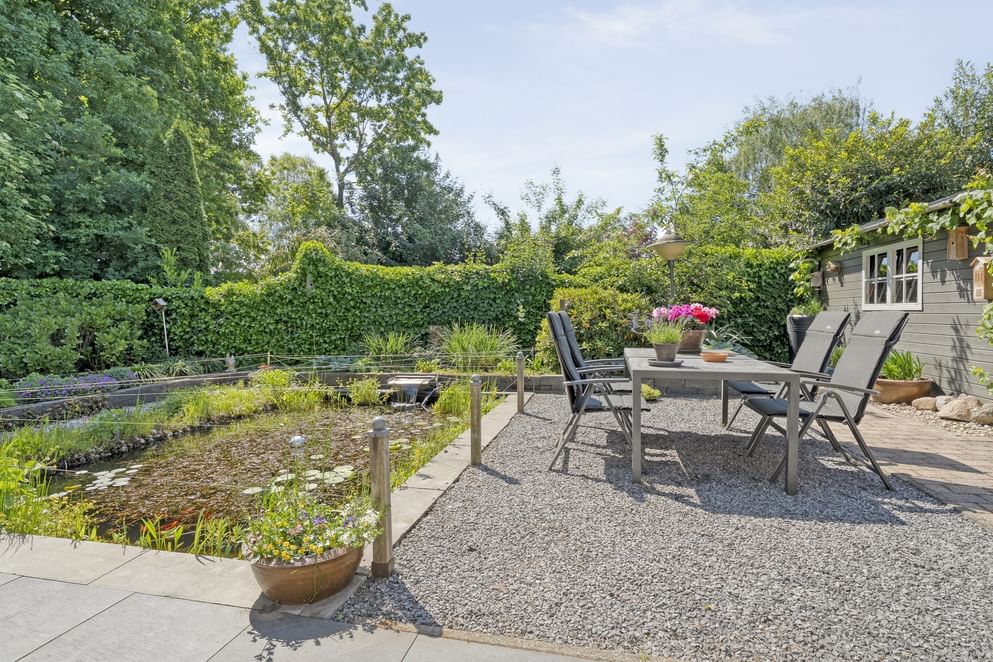- Ruime tuin met verschillende zitplekken en vijver * Bij koop is een waarborgsom/bankgarantie vereist van 10% van de koopsom