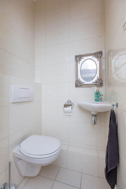 De overloop geeft je toegang tot drie slaapkamers en de badkamer. De ruime badkamer beschikt over een ligbad, wastafel, designradiator, douchecabine en tweede toilet.