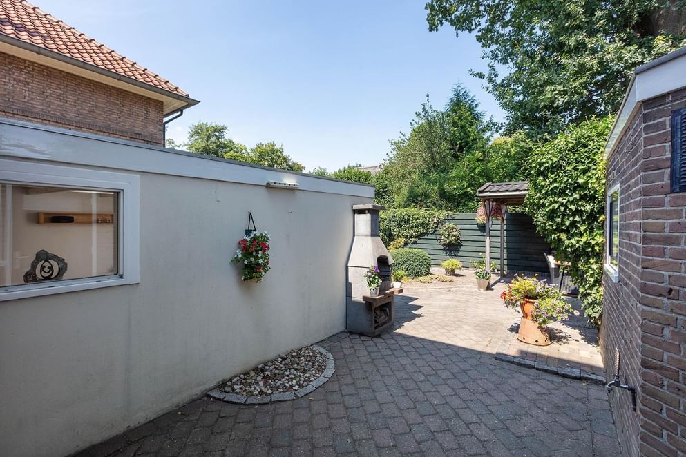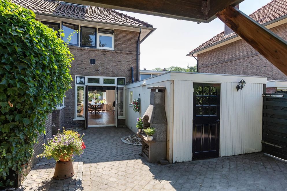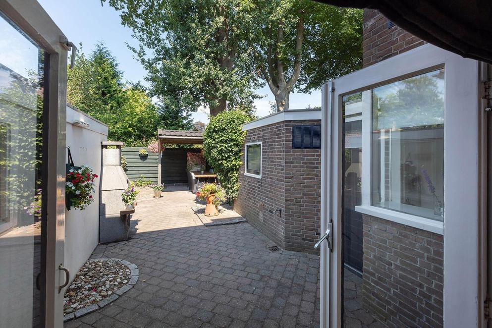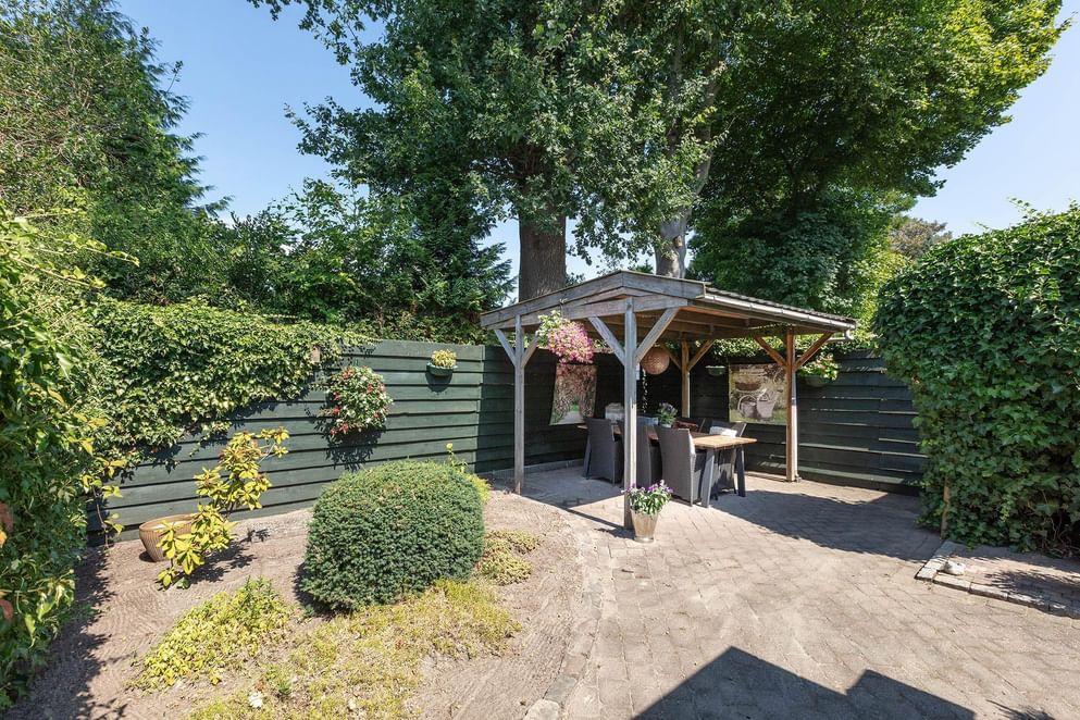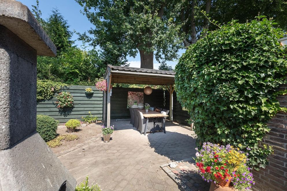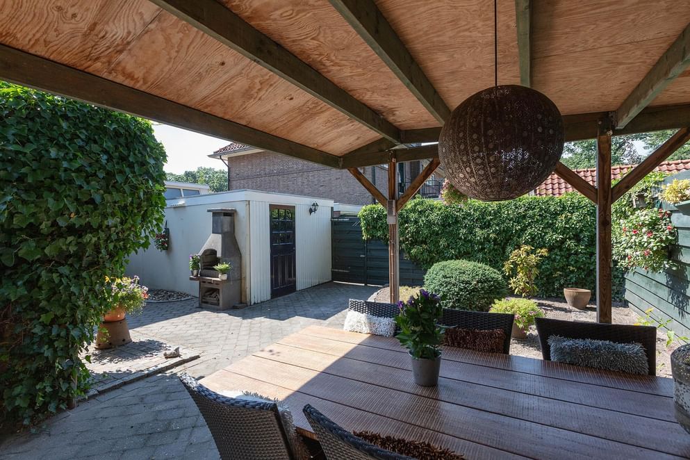 De verzorgde achtertuin is bereikbaar vanuit zowel de woonkamer als het achter portaal. In de woonkamer zijn namelijk openslaande tuindeuren te vinden, zo kun je het optimale binnen-buitengevoel creëren. De tuin beschikt over een fijne overkapping en veel groen, tevens is er veel privacy hier. Tot slot is er een achterom aanwezig.