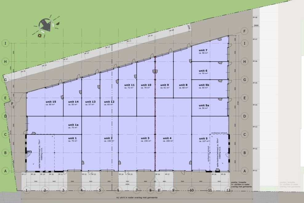 De bedrijfsunits worden standaard casco opgeleverd, uiteraard kunt u ook kiezen voor een indeling op maat. Denk hierbij aan een volledig afgewerkte unit met bijvoorbeeld een kantoor of sanitaire unit.