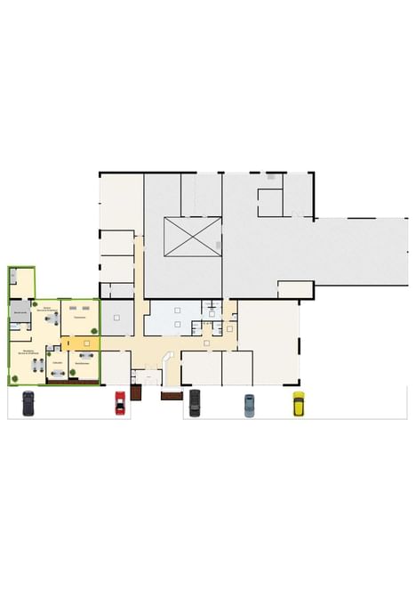 - Deel 3 (ca. 293 m²): 3x kantoorruimte, magazijn/werkplaats, kantoor magazijn/werkplaats VERHUURD