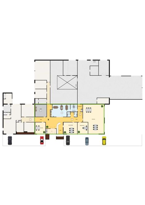 Het pand kan worden opgedeeld in 4 gedeeltes welke separaat te huren zijn. Daarnaast is het mogelijk een combinatie van deze gedeeltes of het pand in zijn geheel te huren.