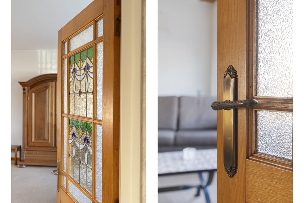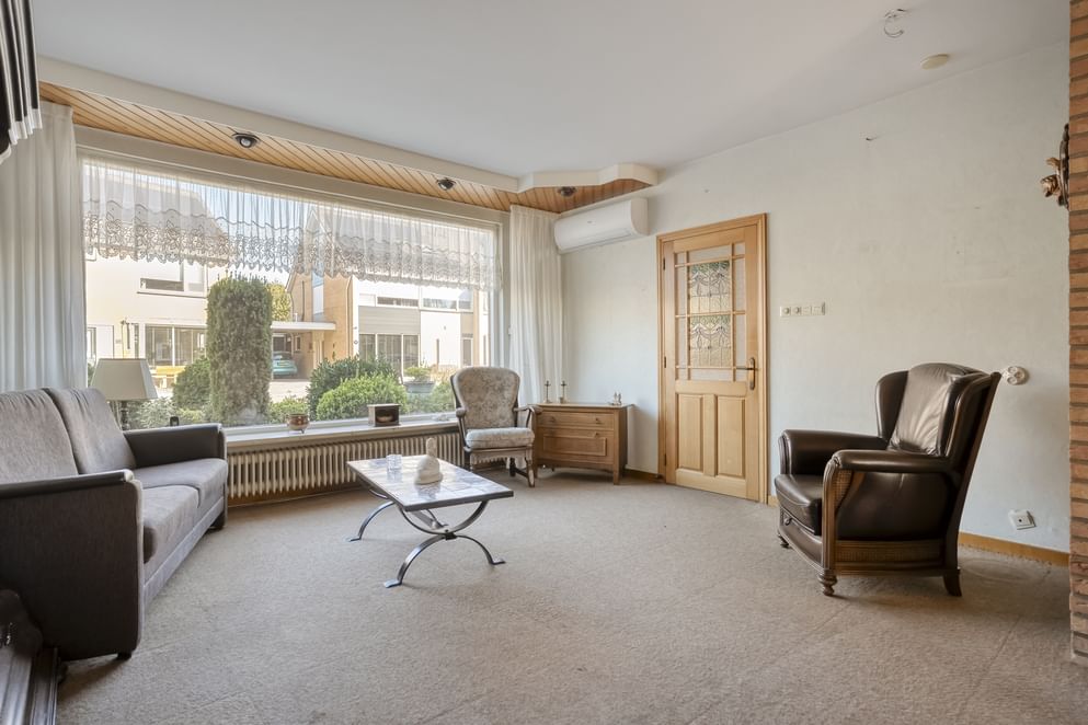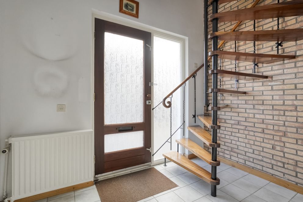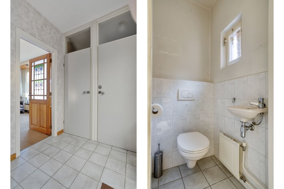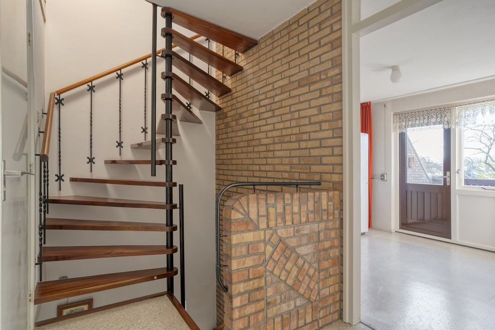 Via de voordeur kom je binnen in de entree met de trapopgang en het toilet. Vanuit de hal loop je door naar de woonkamer. Aan de linkerzijde bevindt zich de eetkamer, die doorloopt naar de serre met schuifdeuren. Hierdoor geniet je van veel lichtinval en een fijne verbinding met buiten, ideaal op warme dagen wanneer je de woning kunt openen voor frisse lucht.