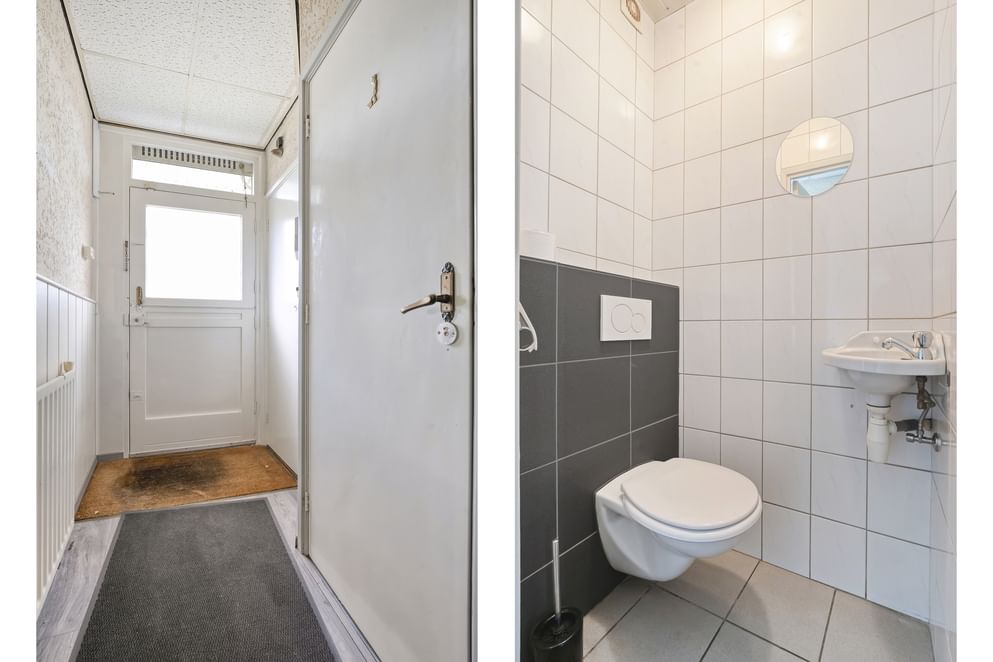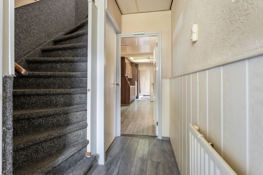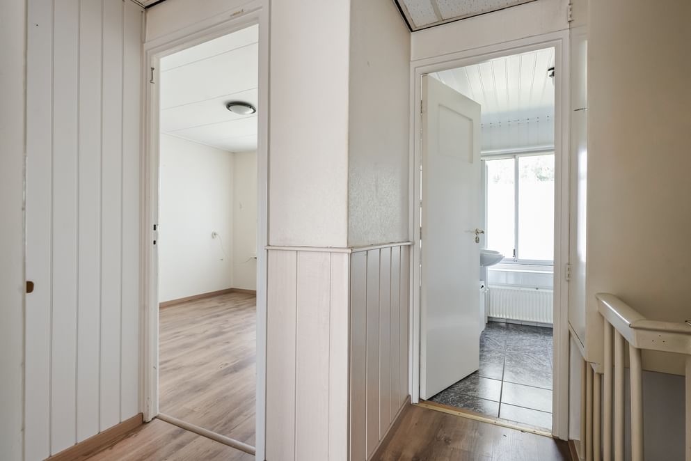 Via de trap in de hal bereik je de eerste verdieping met drie ruime slaapkamers. De kamers aan de voorzijde zijn voorzien van rolluiken en beschikken over stalen kozijnen, terwijl de slaapkamers aan de achterzijde zijn uitgerust met kunststof kozijnen. De overloop biedt daarnaast nog een handige bergkast. De badkamer is compleet ingericht met een inloopdouche, toilet en wastafel.
