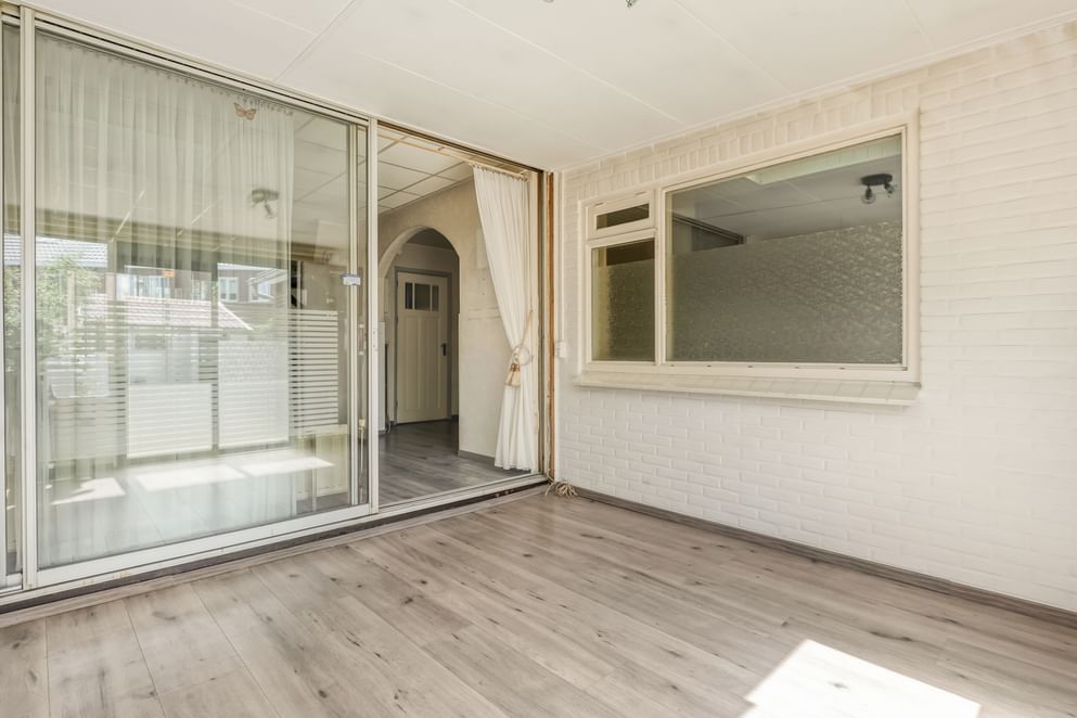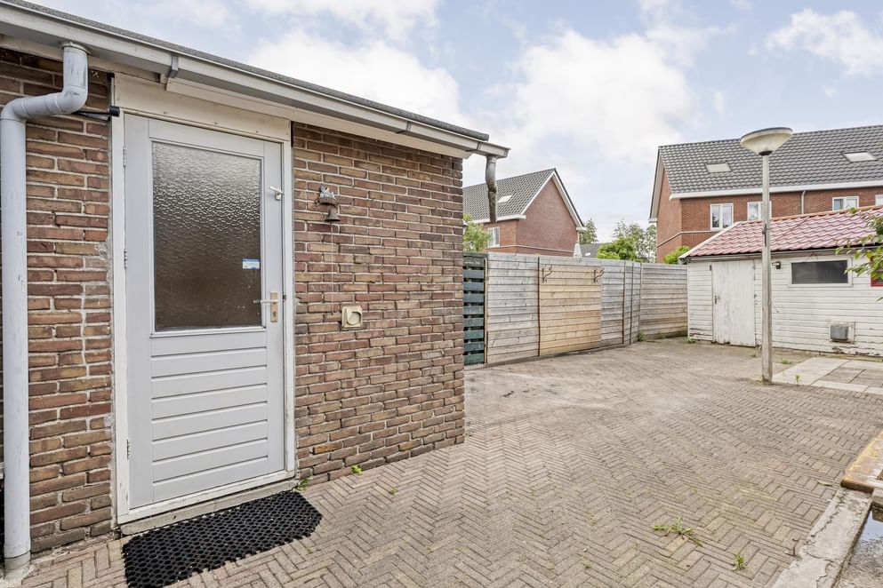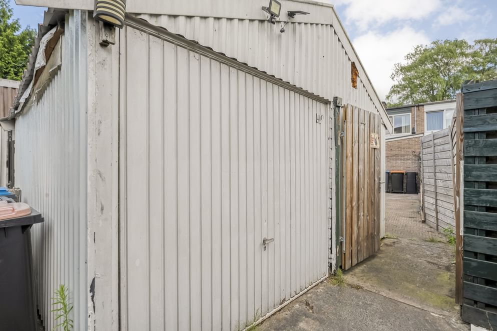 Via de schuifdeuren in de serre stap je zo de tuin in. Deze is gelegen op het zuidoosten en heerlijk zonnig. De tuin is onderhoudsvriendelijk aangelegd en beschikt over een vrijstaande berging, perfect voor het opbergen van fietsen of tuingereedschap. Dankzij de achterom is de tuin ook gemakkelijk van buitenaf bereikbaar.