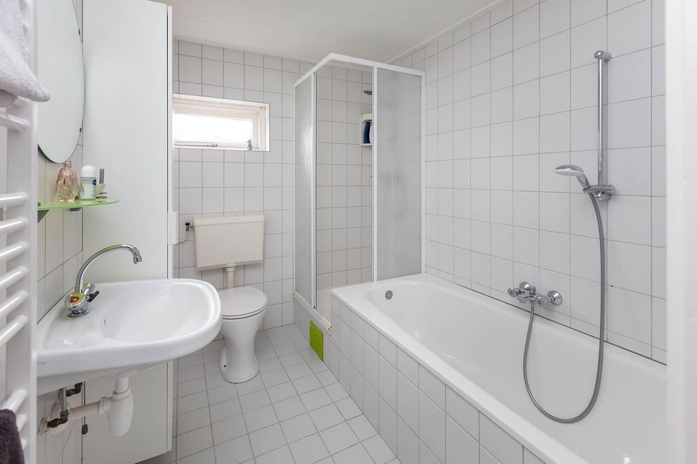 Op de overloop heb je toegang tot drie ruime slaapkamers met een laminaatvloer, waarvan twee slaapkamers zijn voorzien van een vaste kastenwand, en de badkamer. De badkamer is in zijn geheel betegeld en voorzien van een ligbad, douchecabine, toilet en wastafel.