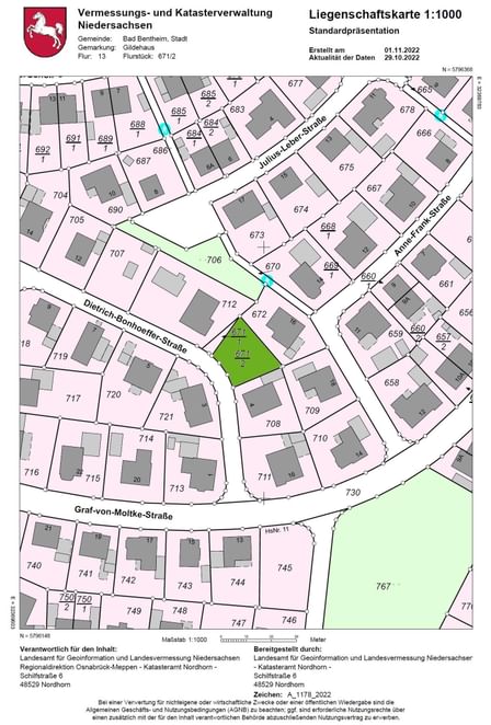 In een woonwijk aan de rand van het dorp Gildehaus aan een verkeersluwe straat gelegen bouwkavel welke rijp is voor de bouw van een woonhuis. Wandel je de Dietrich-Bonhoeffer-Strasse uit dan loop je direct het weidse groene buitengebied in. De omgeving kenmerkt zich door het vlakke landschap met vele bossen. Het dorp zelf biedt een school, enkele horecagelegenheden en voor de dagelijkse boodschappen kun je hier ook goed terecht. Grotere plaatsen nabij zijn aan de Duitse zijde Bad Bentheim en Nordhorn en aan de Nederlandse zijde Enschede. Het idyllische stadje Bad Bentheim op 5 km afstand staat bekend om zijn kasteel Bentheim maar ook de glooiende omgeving om Bad Bentheim is meer dan de moeite waard om er eens wandelend of met de fiets erop uit te trekken.