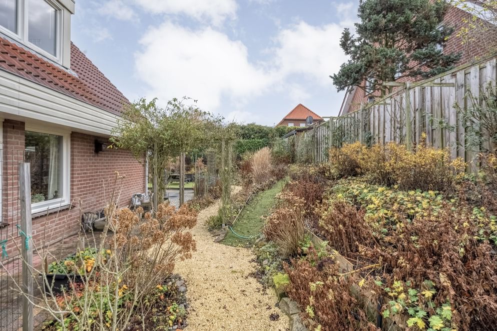 De tuin rondom is fraai aangelegd en biedt verschillende zitplekken, privacy en ruimte voor buitenleven. Vanonder de overkapping grenzend aan de woning heb je zicht op de tuin, een natuurlijk geheel waar de huidige eigenaren met recht trots op mogen zijn!