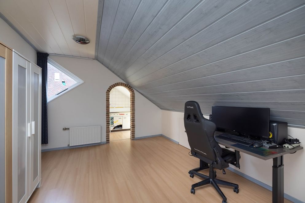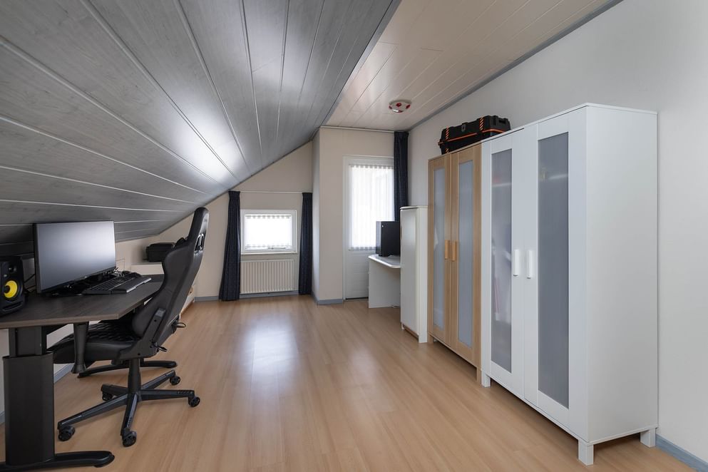Via een vlizotrap is de tweede verdieping van de hoofdwoning bereikbaar. Deze ruime bergzolder is ideaal voor het opslaan van seizoensspullen of andere zaken die je niet dagelijks nodig hebt. Boven het inwoongedeelte bevindt zich een tweede bergzolder, eveneens bereikbaar via een vlizotrap. Ook deze ruimte is geschikt voor opslag.