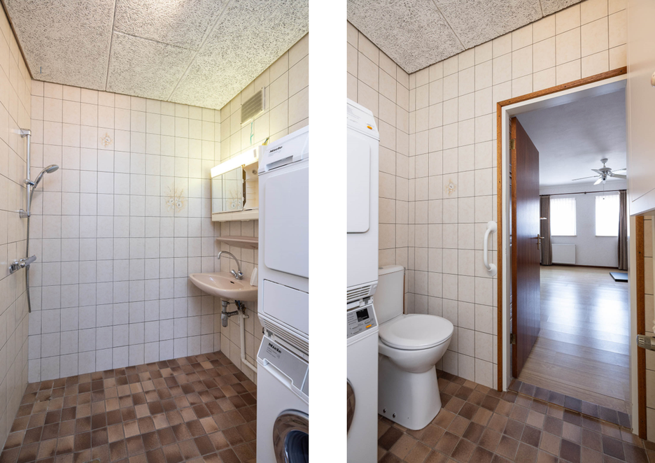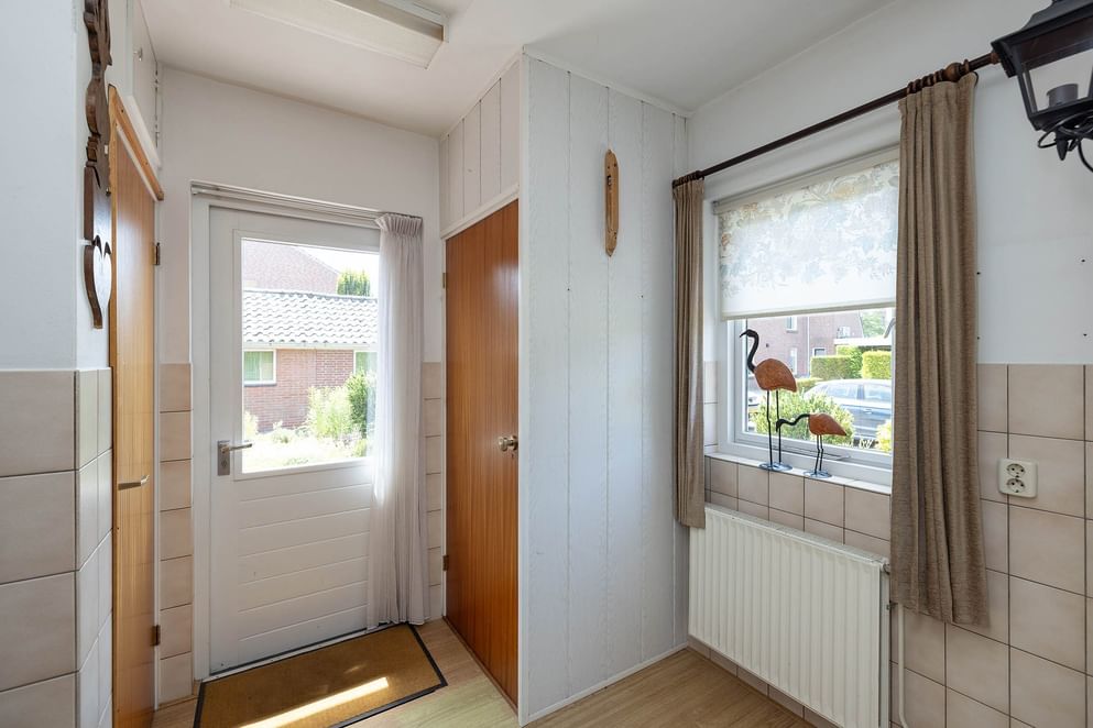 Via de centrale hal kom je in een tweede, ruime hal met wasruimte en directe toegang tot de besloten zijtuin — ideaal voor privacy en rust.