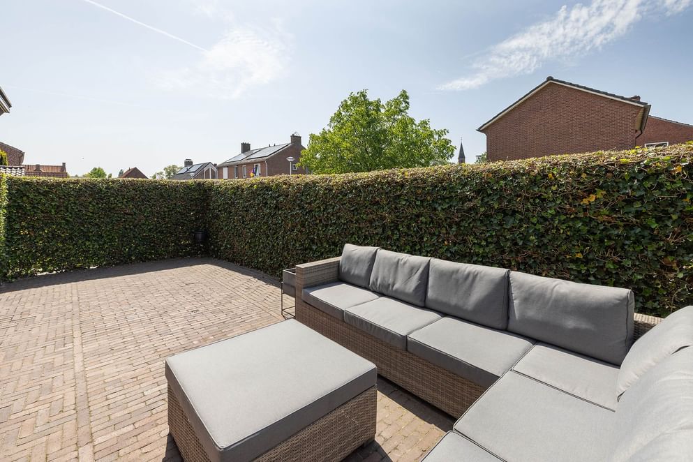 De tuin bereik je via de oprit of via het pad aan de zijkant. Je kunt heerlijk genieten op het besloten terras of in de verzorgd aangelegde tuin aan de achterzijde, die is voorzien van een sierput. Je hebt voldoende (hobby)ruimte in de ruime garage, die beschikt over een overheaddeur en elektra. Voor extra opbergruimte kun je terecht in de schuur.